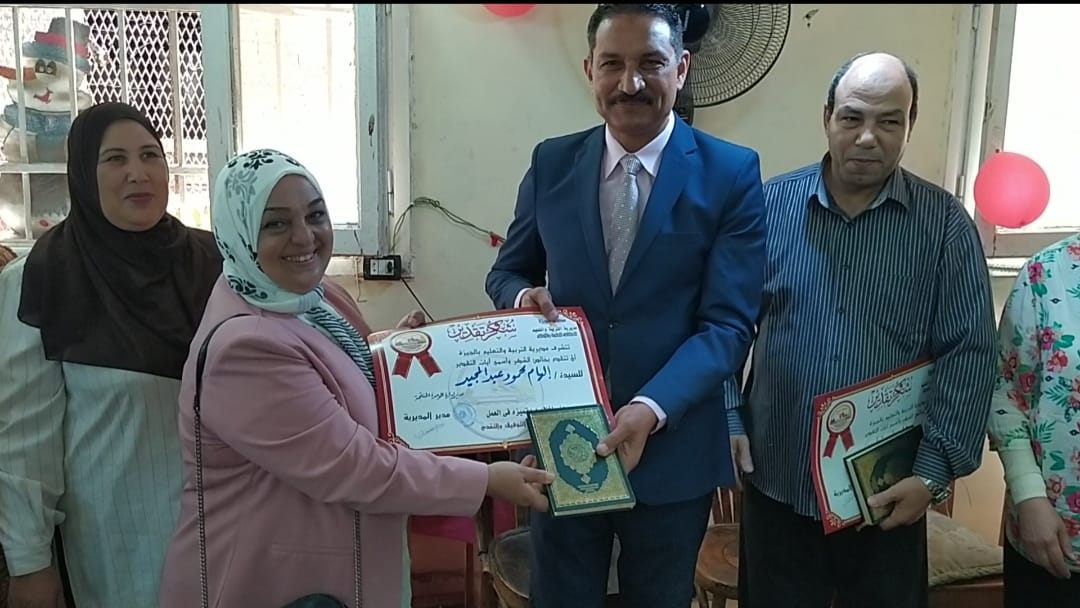 كرم اليوم الأربعاء أشرف سلومة وكيل وزارة التربية والتعليم ومدير مديرية التربية والتعليم في الجيزة كل من طه عبدالحميد قطري، رئيس قسم بالشئون الإدارية مركزي وإلهام محمود عبد المجيد مدير إدارة الوحدة المنتجة مركزي.