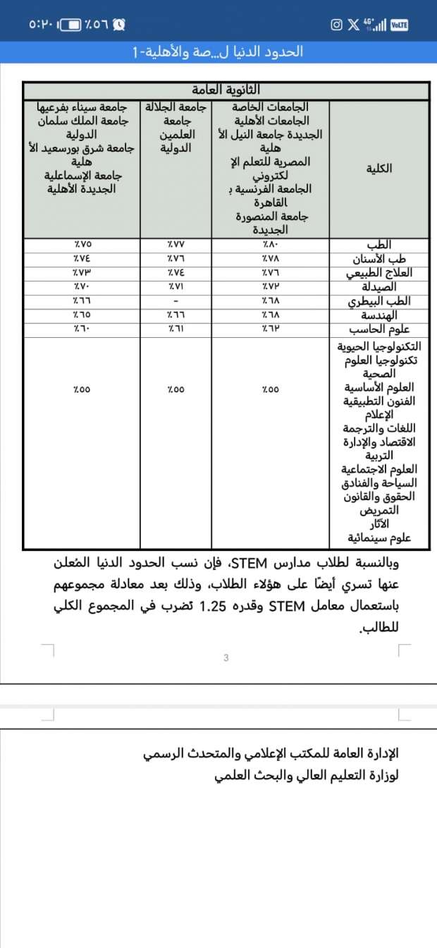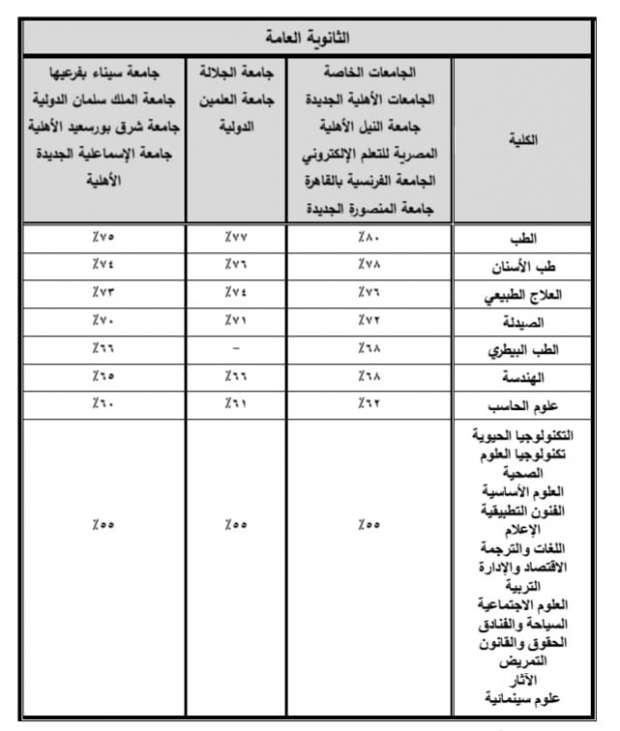 عاجل.. إعلان الحدود الدنيا للالتحاق بالجامعات الخاصة والأهلية