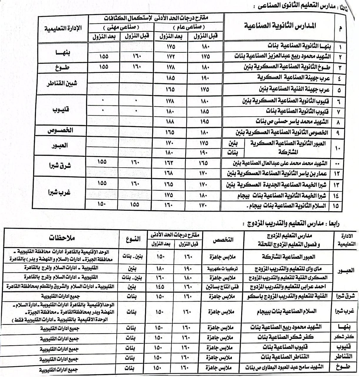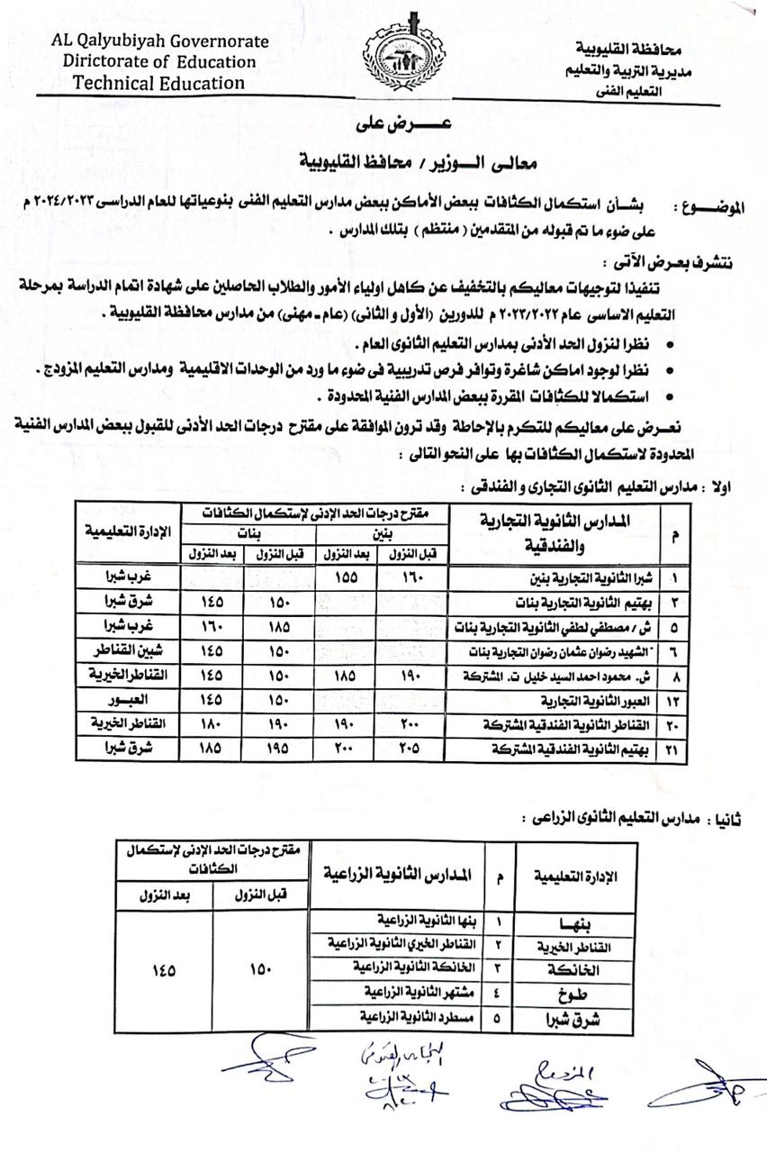 وافق عبد الحميد الهجان محافظ القليوبية، على ما تم عرضه من سماح إبراهيم وكيل وزارة التربية والتعليم بالقليوبية، بشأن تخفيض الحد الأدنى للقبول ببعض مدارس التعليم الفني بنوعياتها (صناعية - زراعية - تجارية - فندقية).