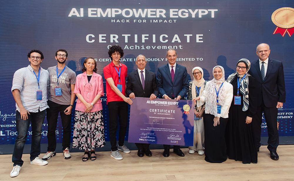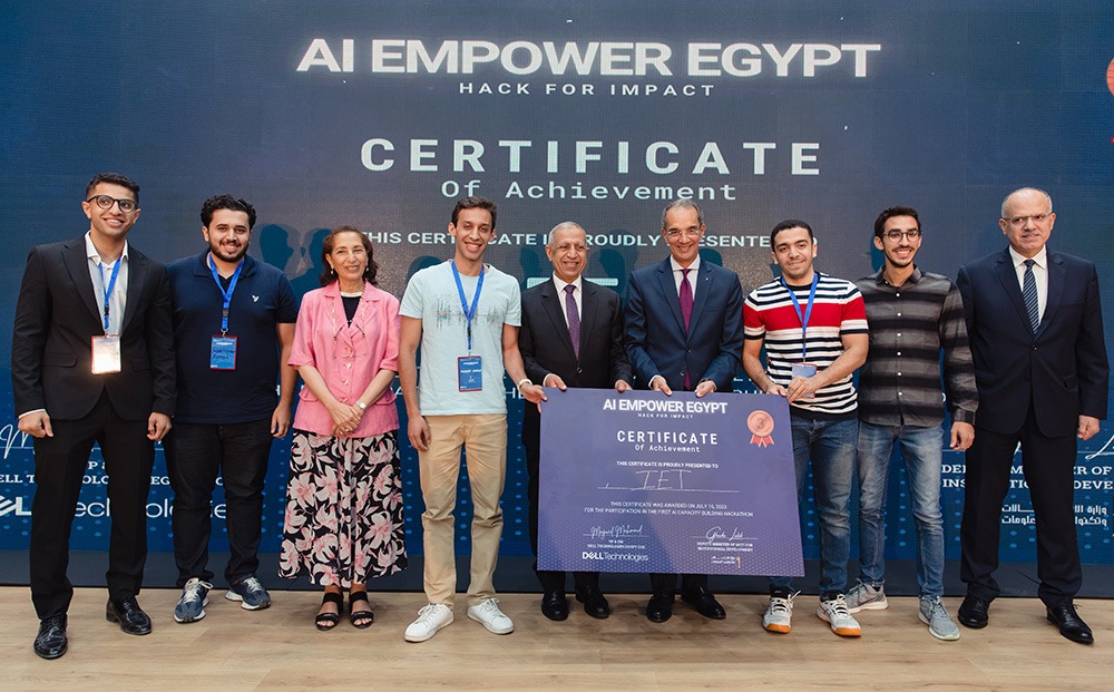 وبموجب هذا الفوز كرم الدكتور عمرو طلعت وزير الاتصالات وتكنولوجيا المعلومات الفرق الفائزة في الهاكثون، موضحًا خلال كلمته التي ألقاها أهمية مبادرة "بناء القدرات للجامعات في مجال الذكاء الاصطناعي" التي تتمثل في كونها تتعلق بأحد أبرز تخصصات الاتصالات وتكنولوجيا المعلومات، وأن مصر تقدمت 7 مراكز فى الموشر العالمي للذكاء الاصطناعي الصادر عن شركة تورتواز ميديا المتخصصة في مجال الذكاء الاصطناعى، كما تقدمت 17 مركزًا في المؤشر الخاص بالمهارات المتعلقة بالذكاء الاصطناعى؛ لافتًا إلى جهود الدولة لتعزيز استخدام الذكاء الاصطناعي بتشكيل مجلس وطنى للذكاء الاصطناعى يضم الجهات المعنية بهذه التكنولوجيا، مع وضع استراتيجية وطنية للذكاء الاصطناعي.