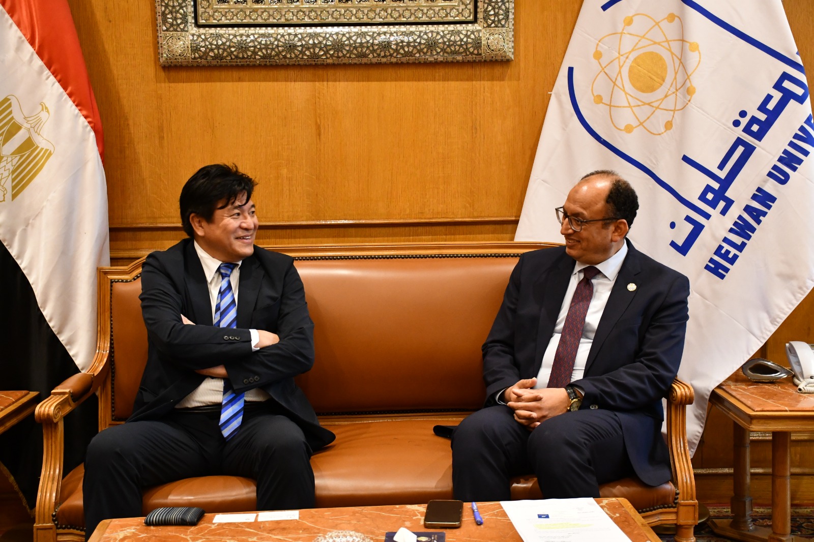 رئيس جامعة حلوان يستقبل ممثل جامعة كيوشو وجامعة نجازاكي وجامعة كوماموتو في اليابان