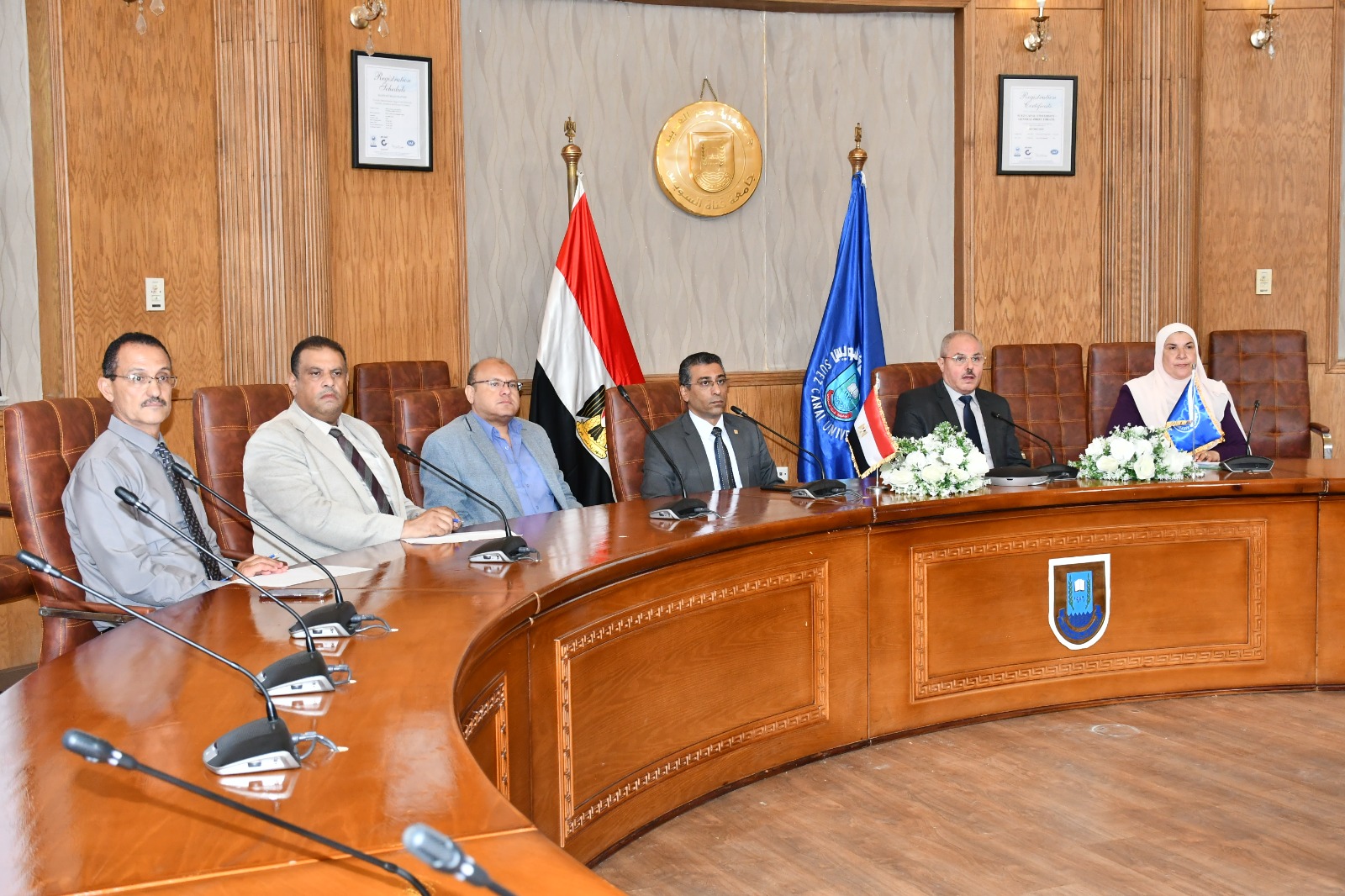 اجتمع الدكتور ناصر مندور رئيس جامعة قناة السويس، صباح اليوم، بوفد الهيئة العربية للتصنيع؛ من أجل تنفيذ مرحلة التشغيل والتسليم النهائي لمنظومات مشروع التحول الرقمي بالجامعة.