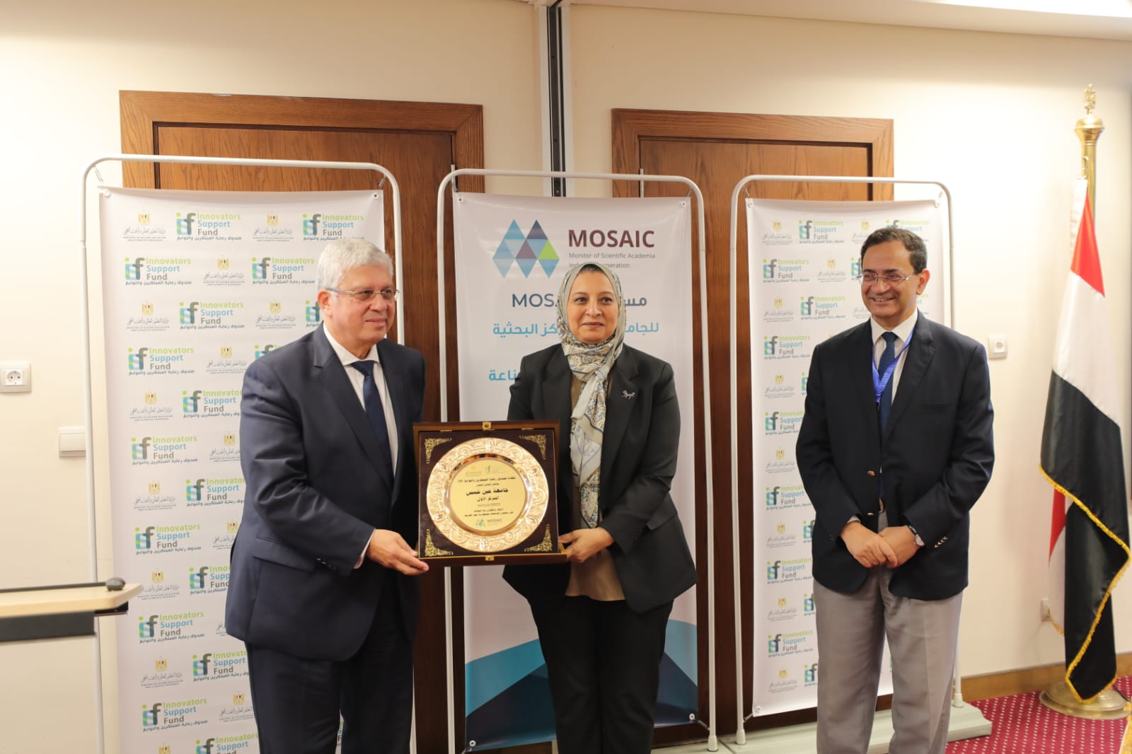 شهد الدكتور أيمن عاشور وزير التعليم العالي والبحث العلمي، والدكتورة ياسمين فؤاد وزيرة البيئة، صباح اليوم السبت، فعاليات الحفل الذي نظمه صندوق رعاية المبتكرين والنوابغ على هامش انعقاد اجتماع المجلس الأعلى للجامعات؛ بمناسبة إعلان نتائج مسابقة MOSAIC لأفضل الجامعات والمراكز البحثية المصرية في الابتكار والتعاون مع الصناعة وفقًا لمعايير تُماثل معايير مؤشري الابتكار والمعرفة العالميين، وذلك بمقر الوزارة بالعاصمة الإدارية الجديدة.