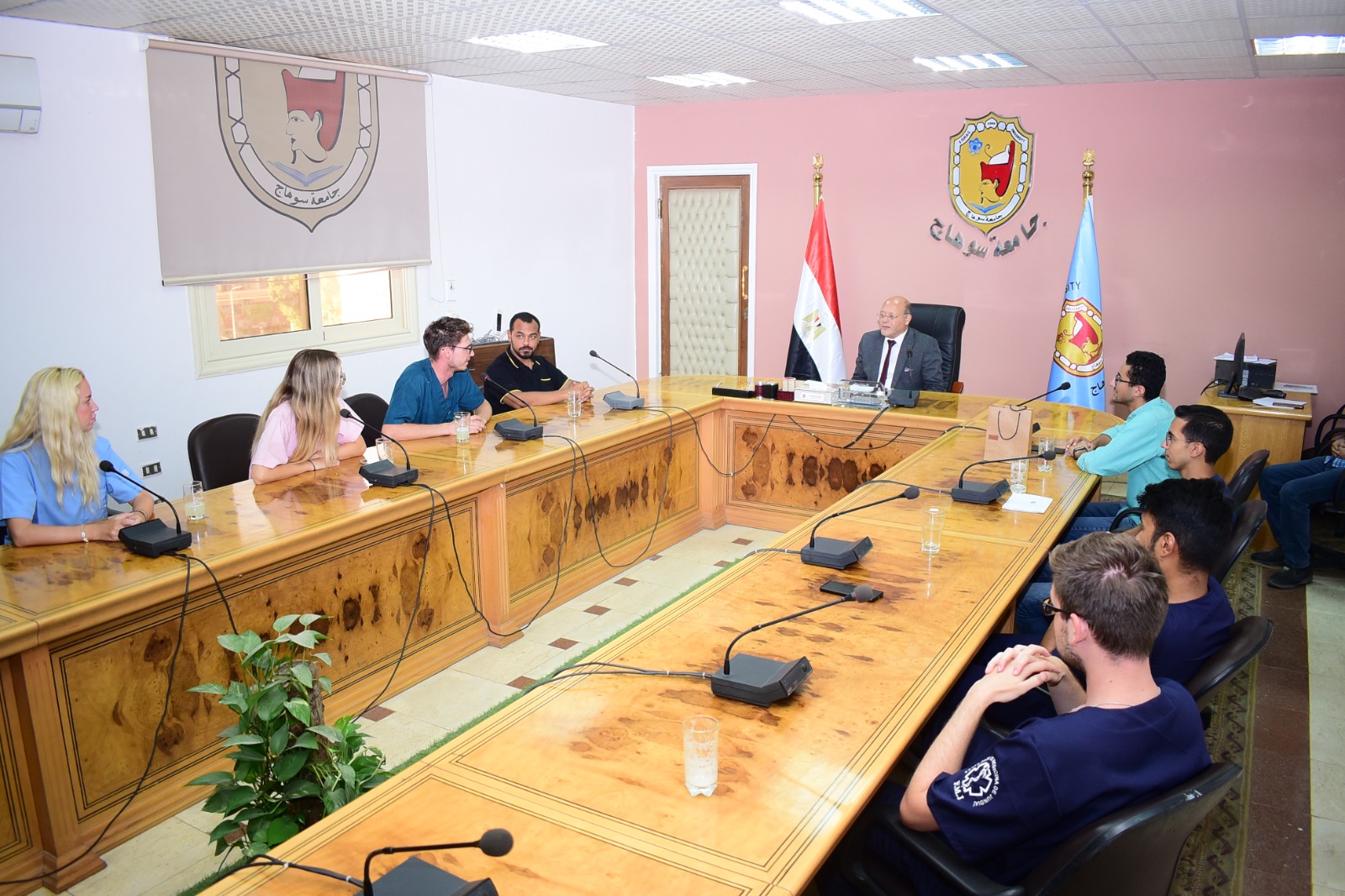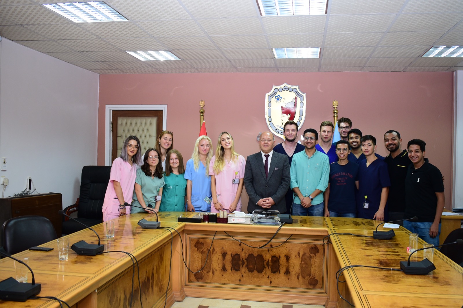 رئيس جامعة سوهاج يستقبل وفدًا دوليًا من طلاب الطب ضمن برنامج التبادل الطلابي