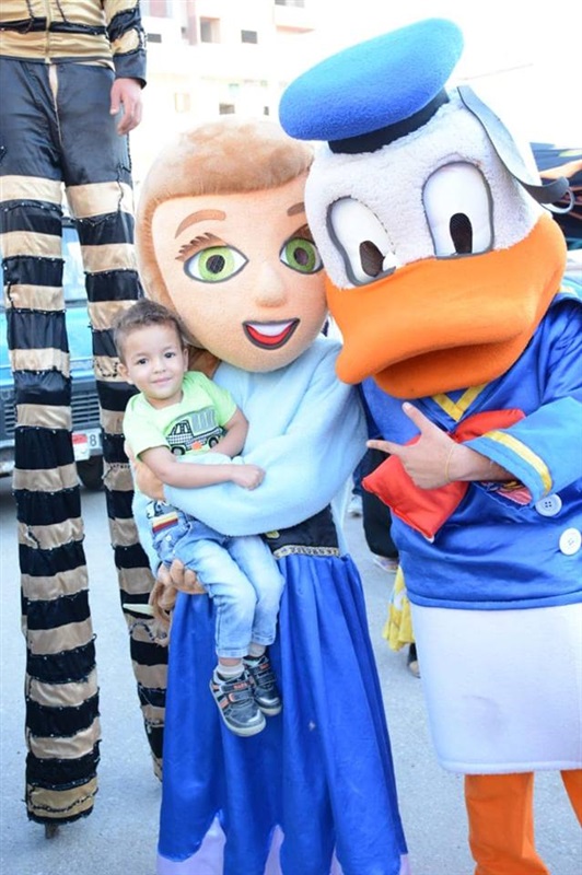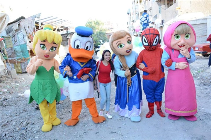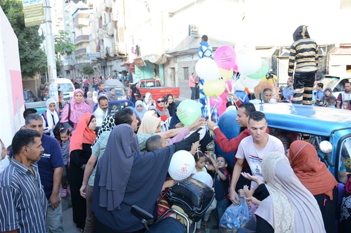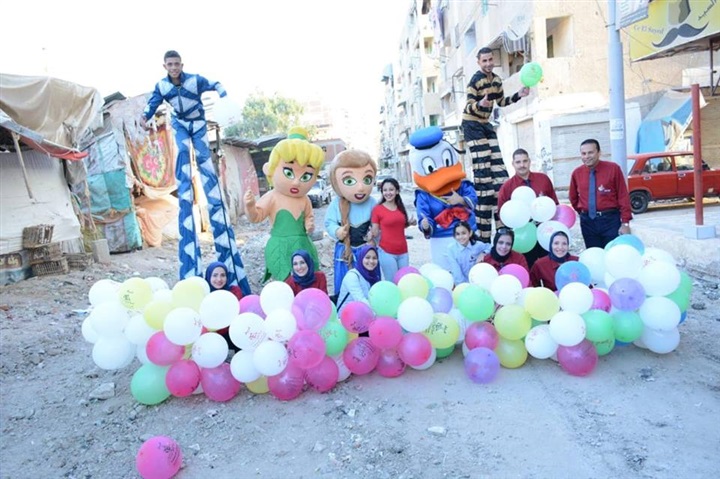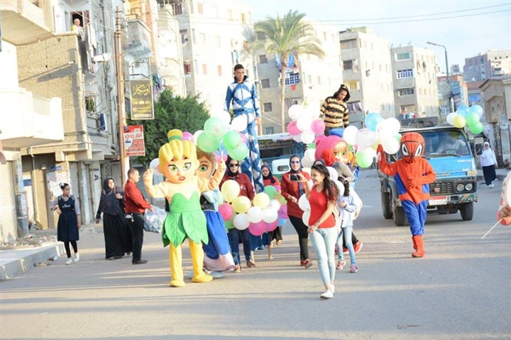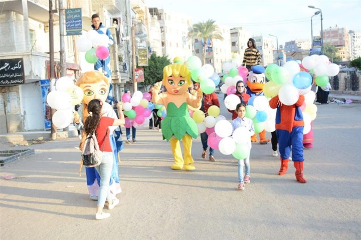 وتوزيع البالونات والحلويات، هذا بالإضافة لعروض للشخصيات الكرتونية بالشوارع لكسر