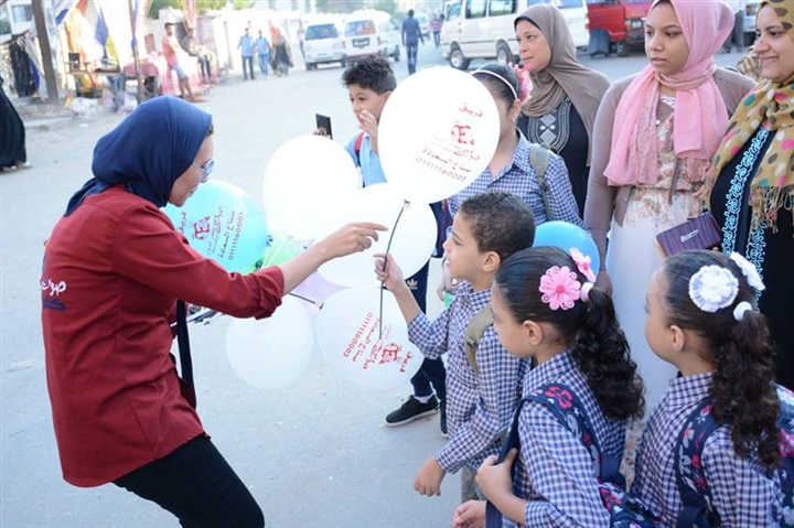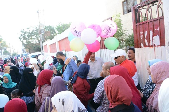 بالصور.. توزيع البالونات والحلويات على التلاميذ أمام مدارس كفر الدوار