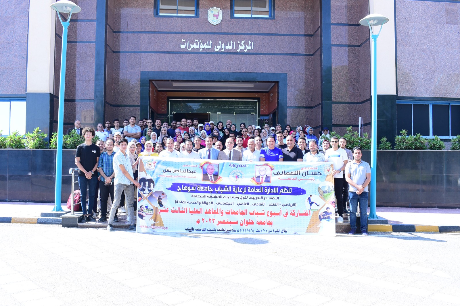 رئيس جامعة سوهاج يعقد لقاء تحفيزي للطلاب المشاركين في أسبوع شباب الجامعات بحلوان