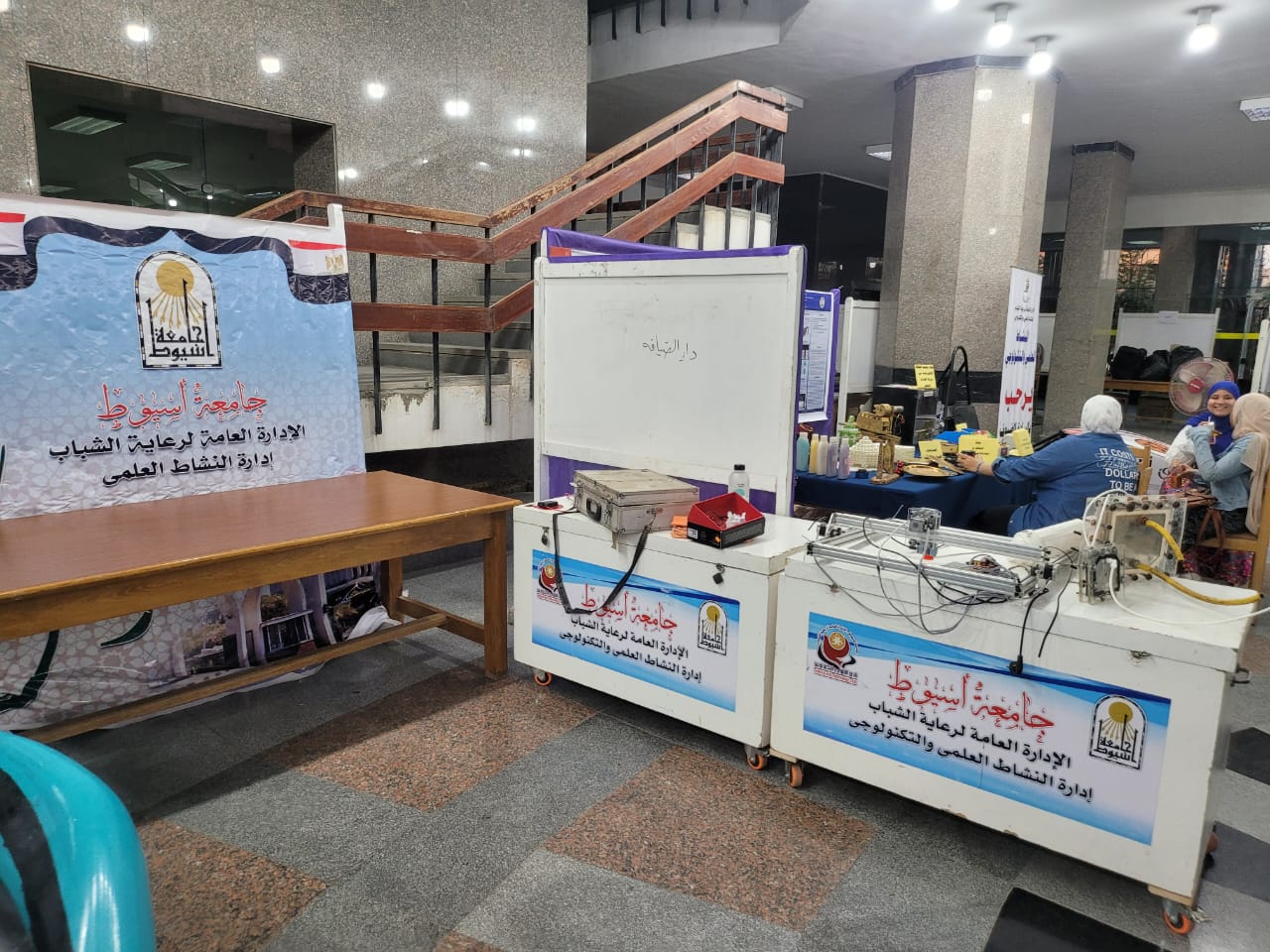 تسلمت لجنة النشاط العلمي والتكنولوجي لأسبوع شباب الجامعات أعمال الجامعات المشاركة بأسبوع شباب الجامعات لعرضها في المعرض العلمي الخاص بعرض الابتكارات والمشروعات العلمية والمشروعات الصغيرة والمقام بالمكتبة المركزية، وتم تعريف الجامعات المشاركة بأماكن العرض، وأماكن عقد الندوات والفعاليات المختلفة وورش تنفيذ وتصميم الروبوتات الخاصة بمسابقة برمجة الروبوت وقاعات العروض العلمية ومسابقات دوري المعلومات العلمية.