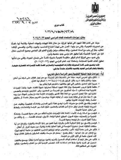 ووجهت الوزارة، بضرورة محاسبة المتغيبين عن المدرسة من المعلمين وغير الملتزمين بتواجدهم بالحصص المقررة لهم، طبقا للجدول المدرسي مع اتخاذ كافة التدابير والإجراءات اللازمة تجاه من يمارس المهنة، دون وجه حق.