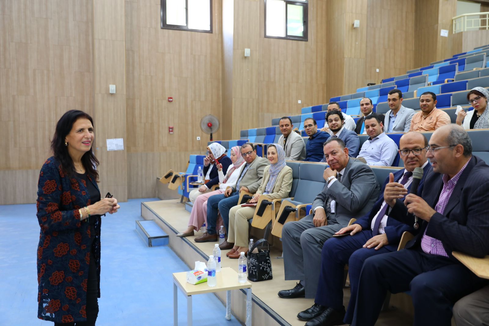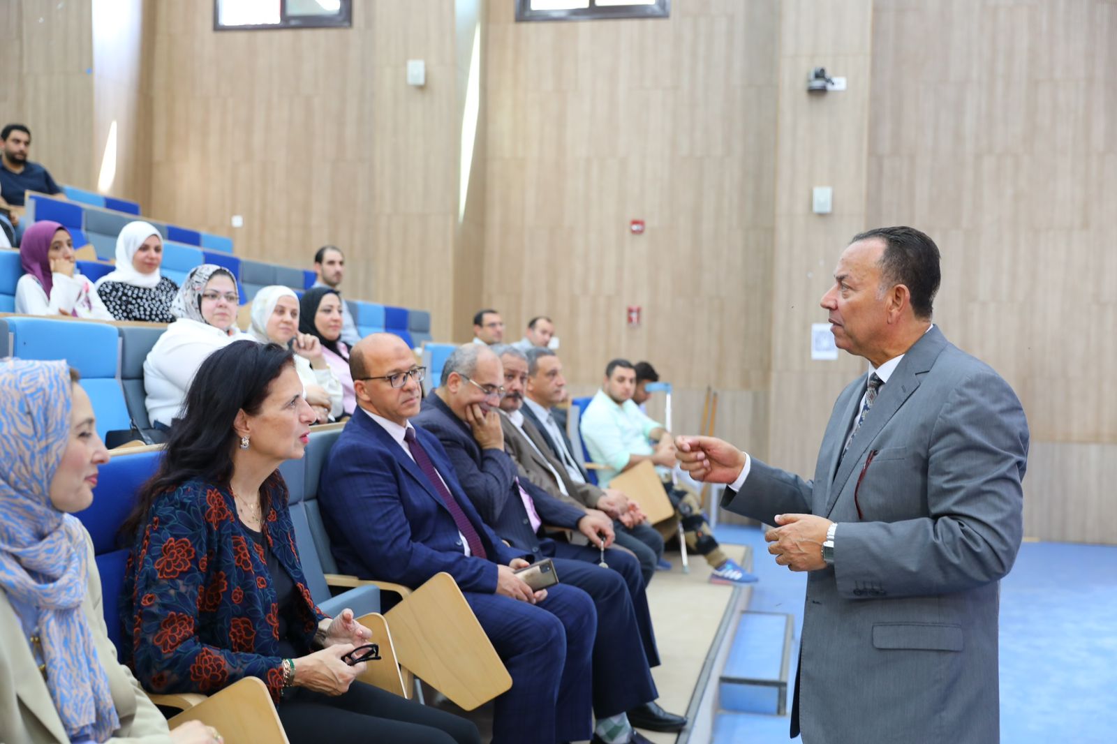 وشهدت الندوة التعريف بالمنح الخاصة بتبادل الأساتذة المصريين والأجانب للتدريس وتبادل الخبرات، بحضور عدد من عمداء الكليات وأعضاء هيئة التدريس والهيئة المعاونة والطلاب والعاملين بالجامعة.