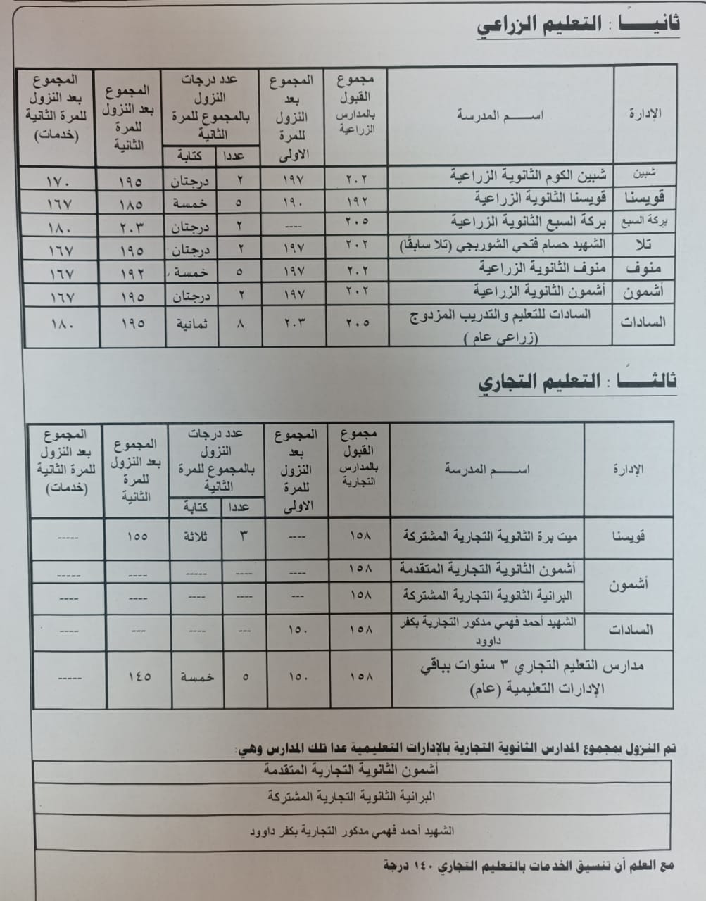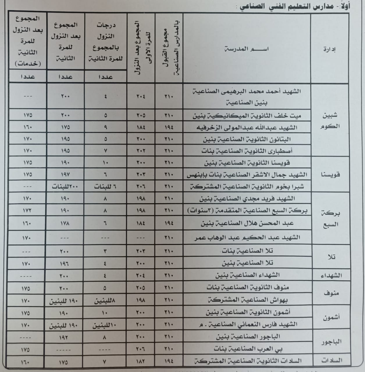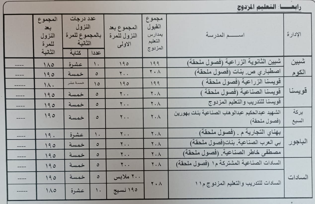 وافق اليوم اللواء إبراهيم أبو ليمون محافظ المنوفية على النزول بدرجات تنسيق القبول ببعض المدارس التعليم الفنى بمختلف تخصصاته ( صناعى -- زراعى - تجارى - تعليم مزدوج ) لعام 2023 – 2024 وفقًا لأعداد المتقدمين والكثافات الطلابية بكافة الإدارات التعليمية بنطاق المحافظة.