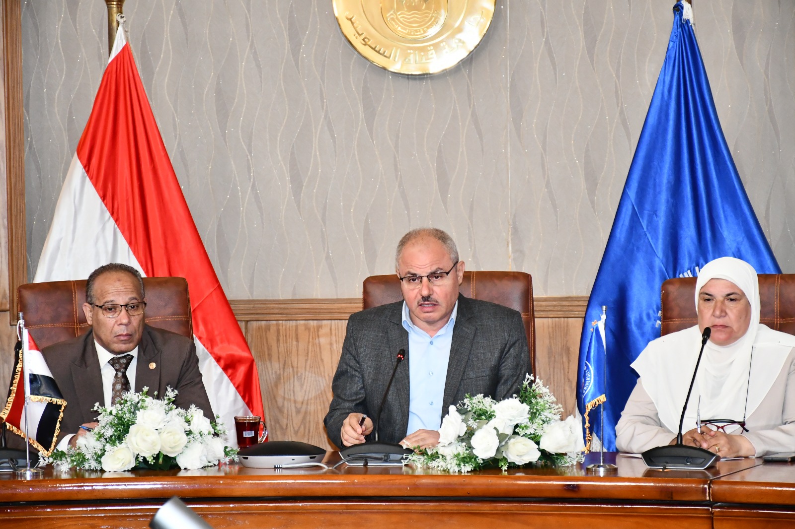 واطمئن رئيس جامعة قناة السويس، خلال اللقاء على جاهزية المدن الجامعية لاستقبال الطلاب للعام الدراسي الجديد، وتوفير بيئة آمنة لهم، من خلال تطبيق معايير السلامة والأمان بمباني المدن.