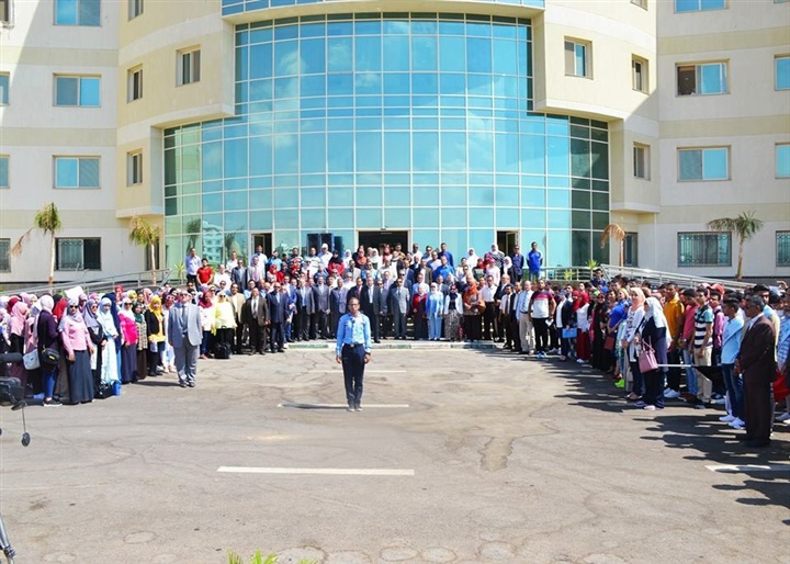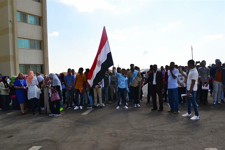 رئيس جامعة السويس يحيي العلم وسط الطلاب في بداية العام الدراسي الجديد