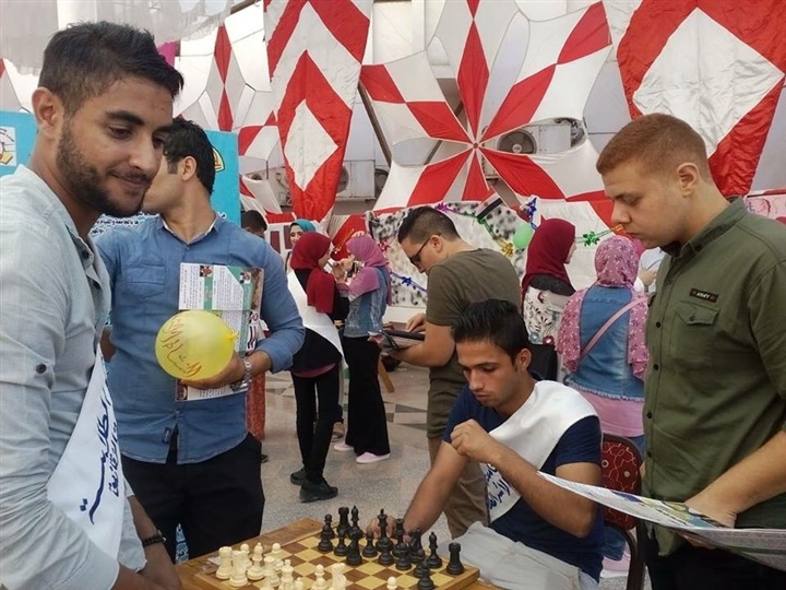اللجان وطلاب الأنشطة بتوزيعها والإجابة علي استفسارات تحت إشراف محمد سمير مدير عام