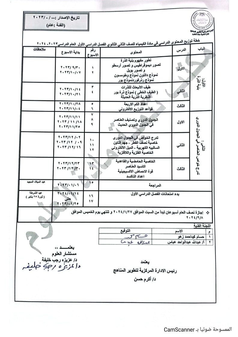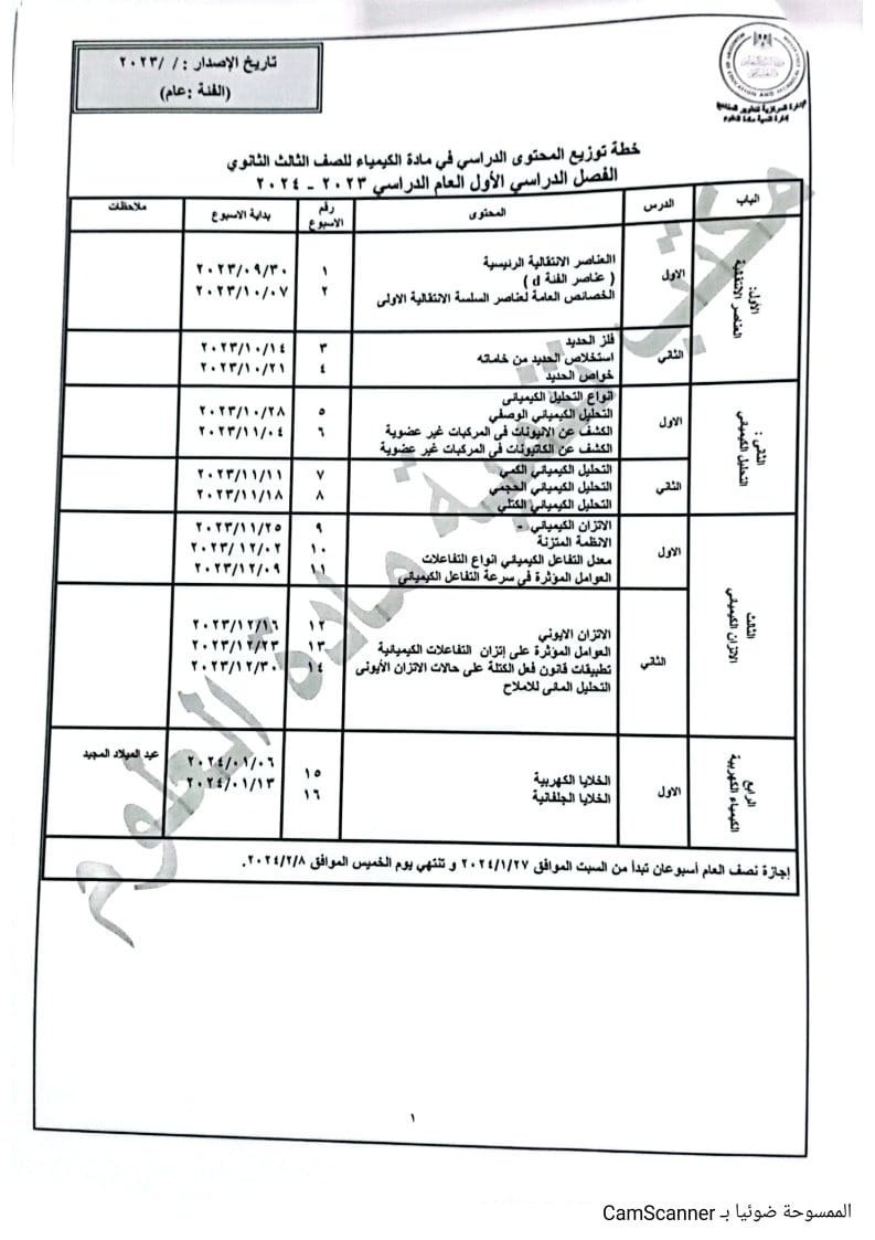 توزيع منهج الكيمياء للثانوية بالعام الدراسي الجديد