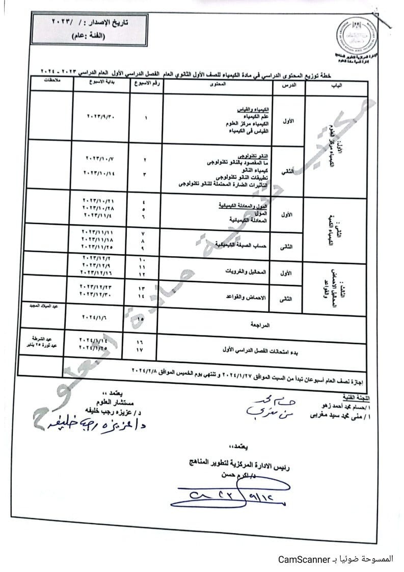 استعداد لانطلاق العام الدراسي الجديد، أعلنت وزارة التربية والتعليم والتعليم الفني، توزيع منهج الكيمياء الفصل الدراسي الأول، للمرحلة الثانوية، للعام الدراسي الحالي 2023/2024، من الصف الأول وحتى الثالث، خلال شهور أكتوبر ونوفمبر وديسمبر.