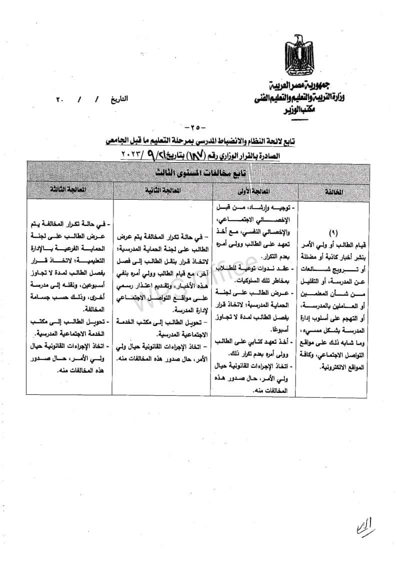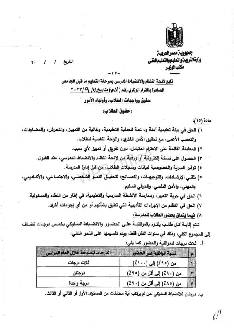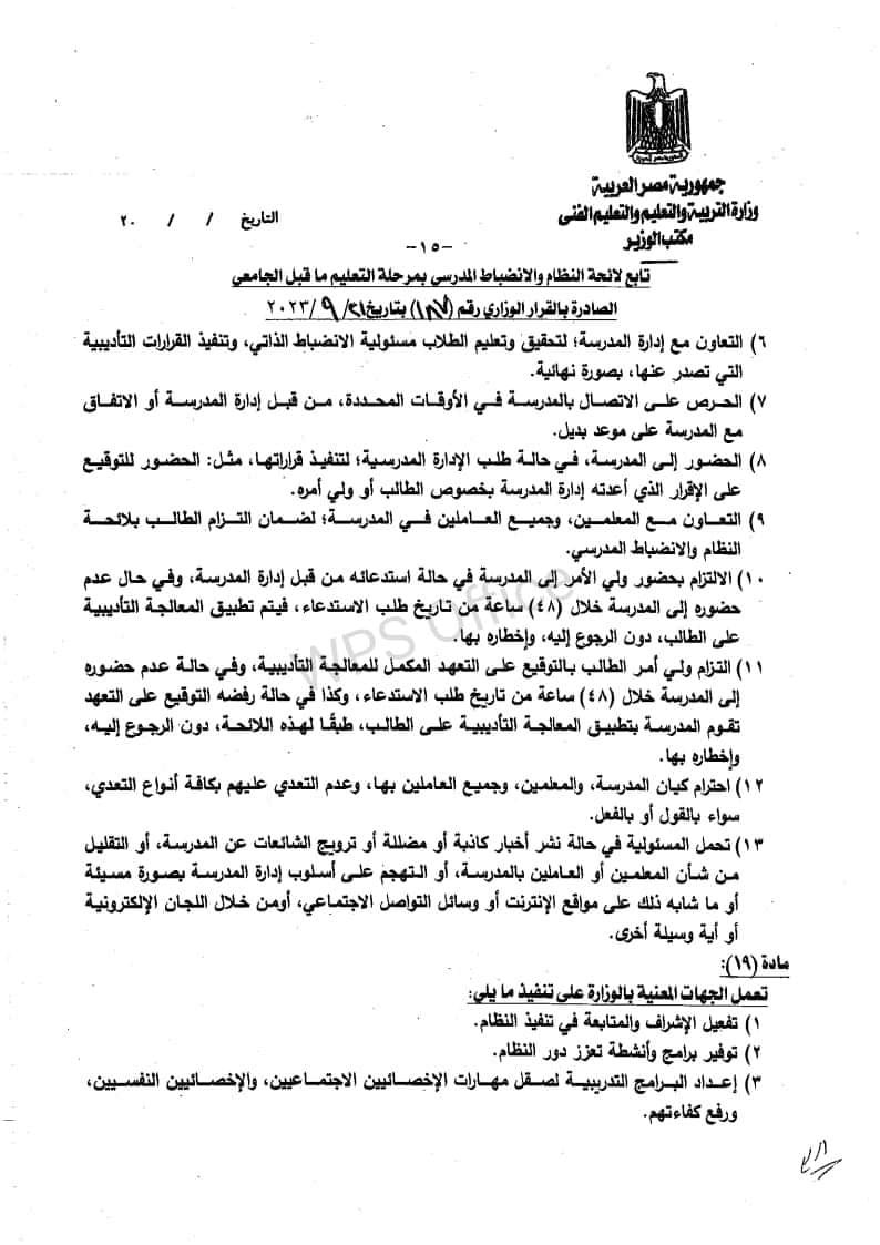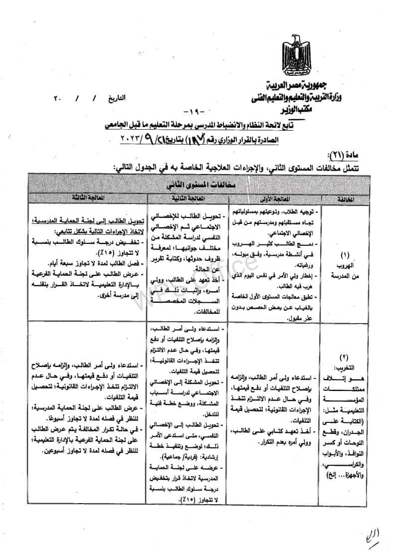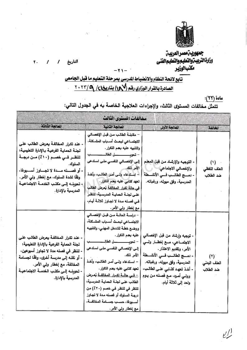 مدارس التعليم تصدر قرار لائحة الانضباط المدرسي.. «كشكول» ينشر نسخة منها ريم محمود الجمعة 22/سبتمبر/2023 - 02:09 م 9/22/2023 2:09:18 PM رضا حجازي طباعة أصدرت وزارة التربية والتعليم والتعليم الفني قرار لائحة الانضباط المدرسى الجديدة القرار رقم 187 بتاريخ 2023/9/21 وحصل موقع كشكول علي نسخة منها وهي كالتالي: facebook twitter whats شارك