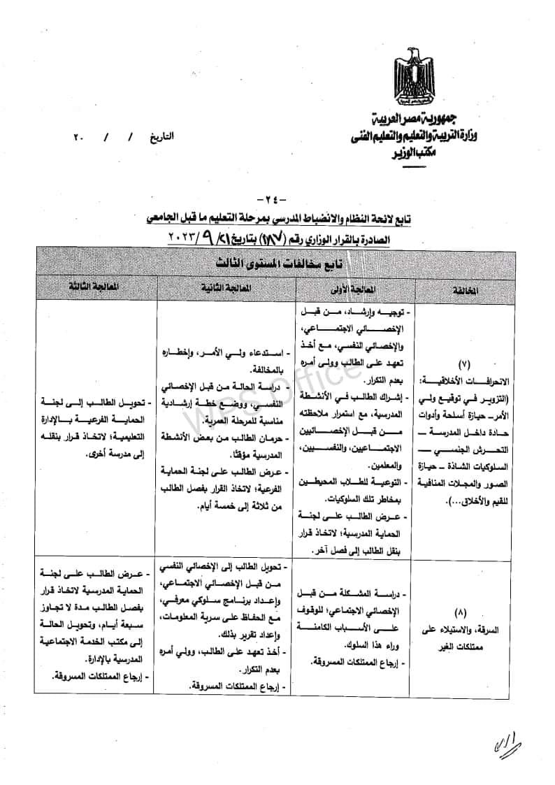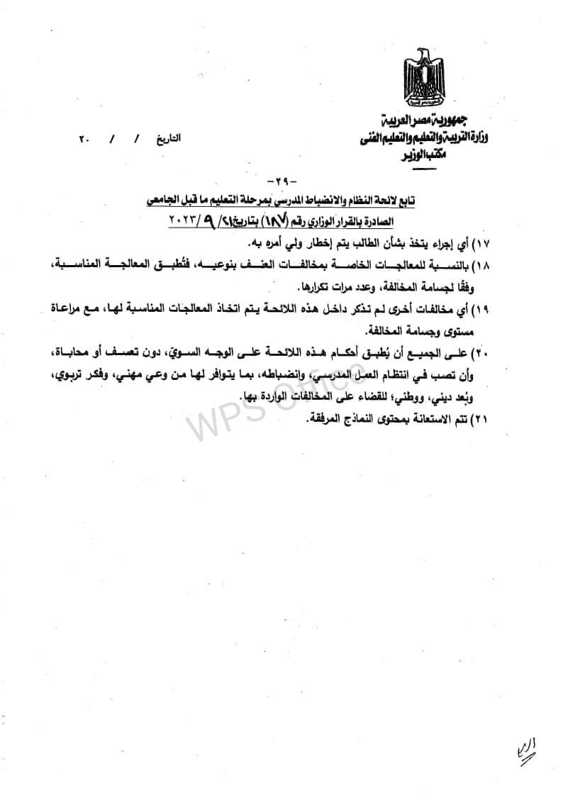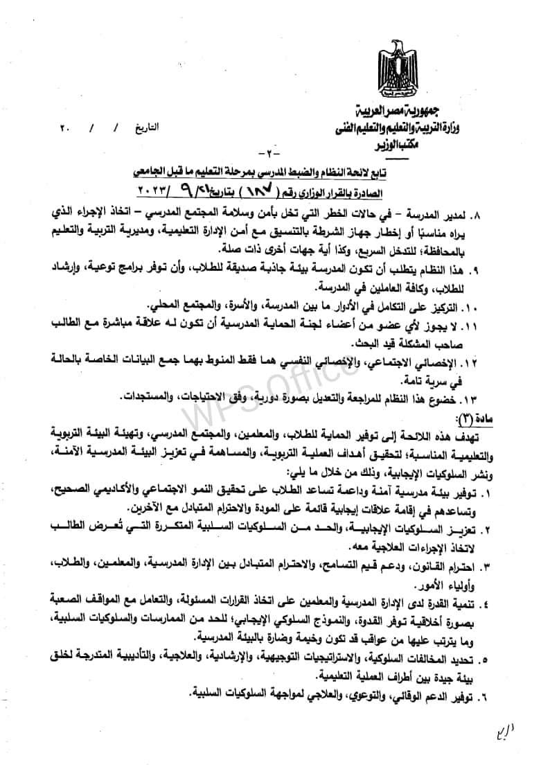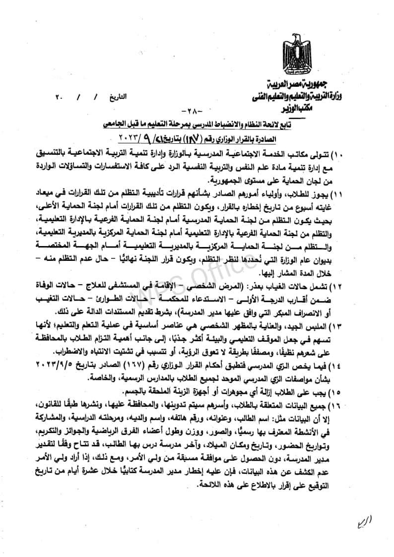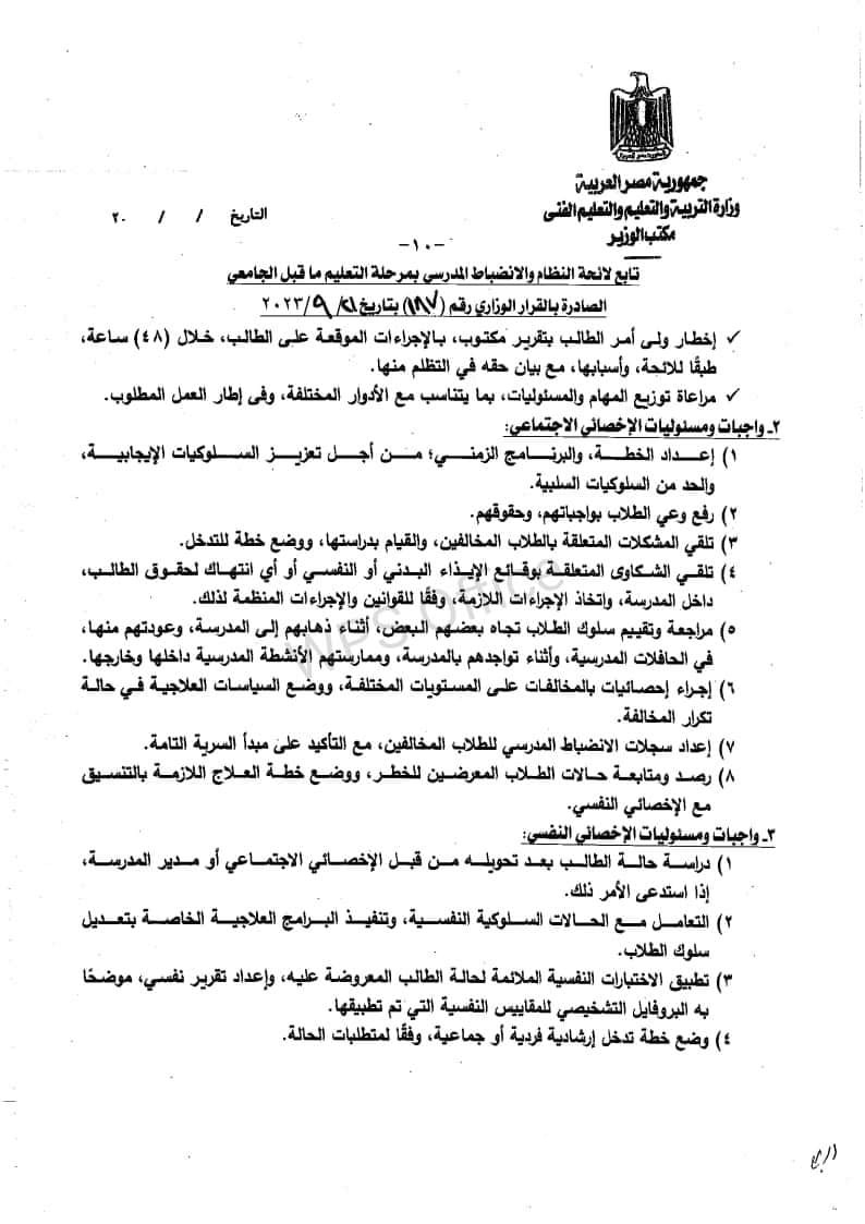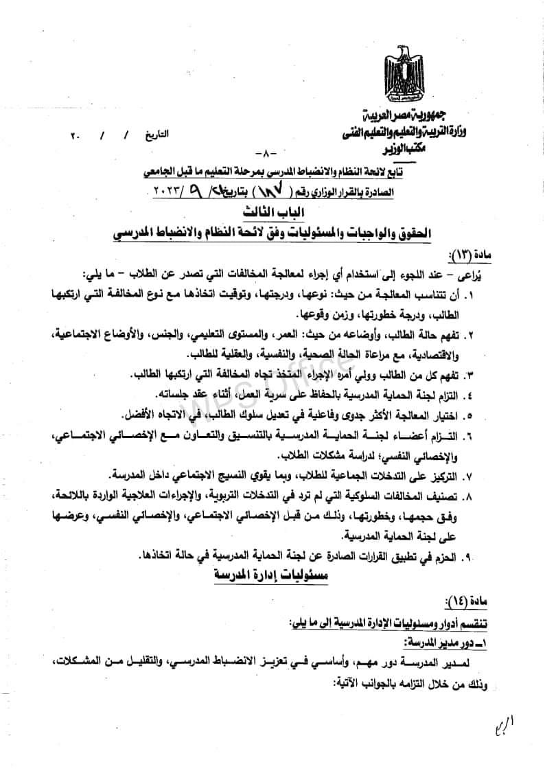 مدارس التعليم تصدر قرار لائحة الانضباط المدرسي.. «كشكول» ينشر نسخة منها ريم محمود الجمعة 22/سبتمبر/2023 - 02:09 م 9/22/2023 2:09:18 PM رضا حجازي طباعة أصدرت وزارة التربية والتعليم والتعليم الفني قرار لائحة الانضباط المدرسى الجديدة القرار رقم 187 بتاريخ 2023/9/21 وحصل موقع كشكول علي نسخة منها وهي كالتالي: facebook twitter whats شارك