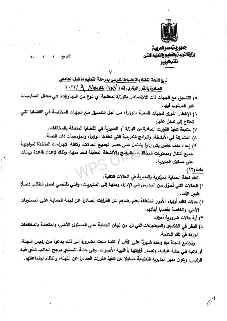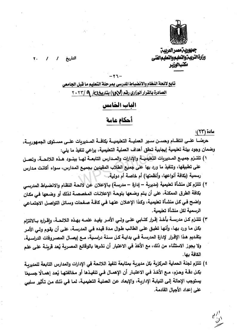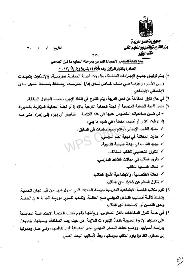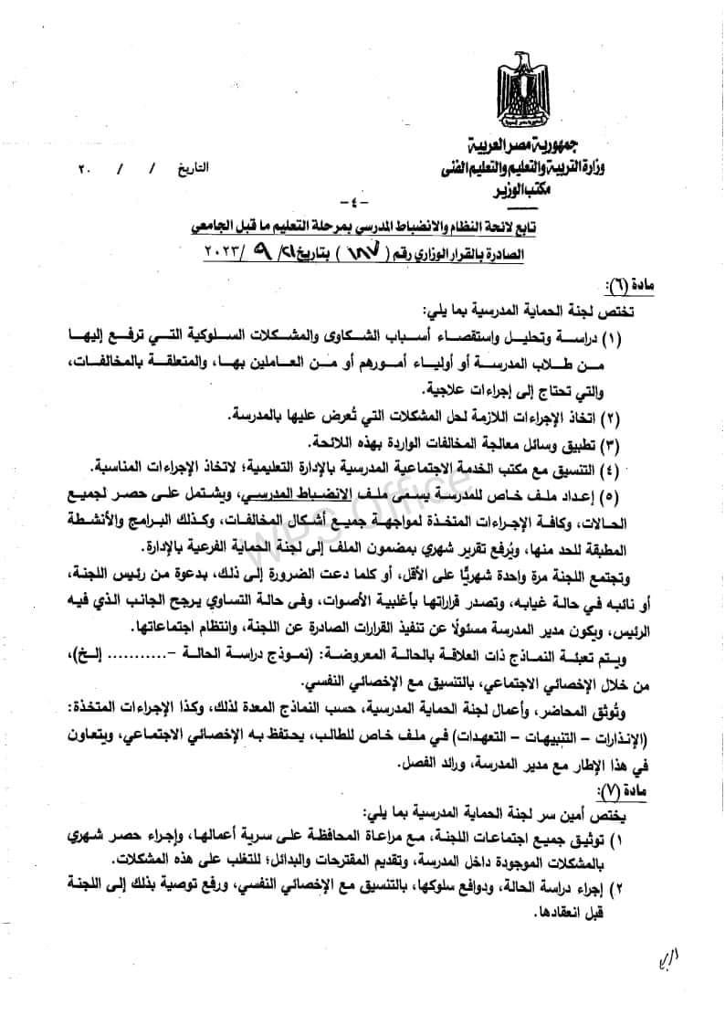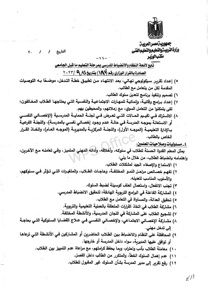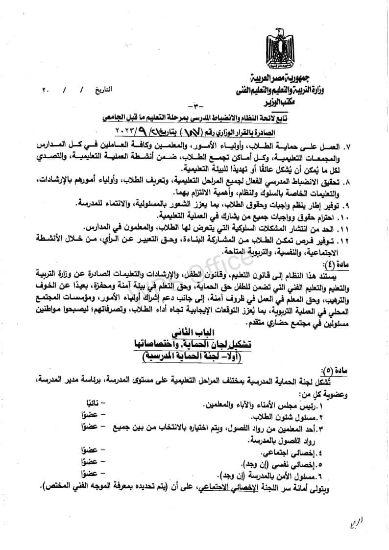 مدارس التعليم تصدر قرار لائحة الانضباط المدرسي.. «كشكول» ينشر نسخة منها ريم محمود الجمعة 22/سبتمبر/2023 - 02:09 م 9/22/2023 2:09:18 PM رضا حجازي طباعة أصدرت وزارة التربية والتعليم والتعليم الفني قرار لائحة الانضباط المدرسى الجديدة القرار رقم 187 بتاريخ 2023/9/21 وحصل موقع كشكول علي نسخة منها وهي كالتالي: facebook twitter whats شارك