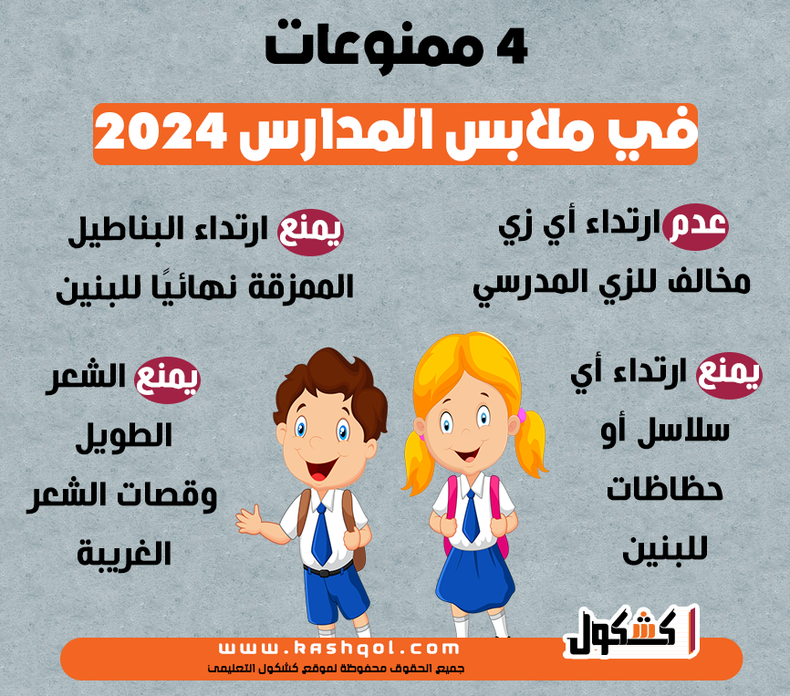إنفوجراف| 4 ممنوعات في ملابس المدارس 2024