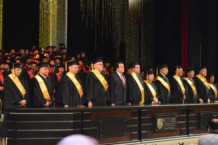 احتفلت جامعة المستقبل، أمس الاثنين، بتخريج الدفعة الثامنة من طلبة كلية طب أسنان والدفعة التاسعة من طلبة كلية الاقتصاد والعلوم السياسية للعام الدراسي 2018/2019، حيث تم تسليم شهادات لجميع الخريجين بحضور كل من: الدكتور خالد عبدالغفار، وزير التعليم العالي والبحث العلمي، وخالد عزازي، رئيس مجلس أمناء جامعة المستقبل والدكتور ياسر الجندي، نقيب أطباء الأسنان، والدكتور حافظ الغندور، نقيب التجاريين، والدكتور عبادة سرحان، رئيس الجامعة، بالإضافة إلى عدد من قيادات وعمداء الكليات وعدد من الشخصيات البارزة منهم الدكتور مصطفى السيد والكاتب الصحفي مجدي الجلاد، وذلك في مركز المنارة الدولي للمؤتمرات، على أنغام اوركسترا الموسيقار الكبير عمر خيرت.