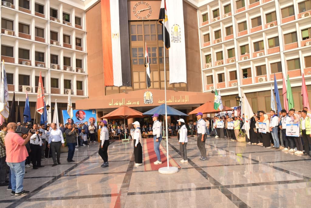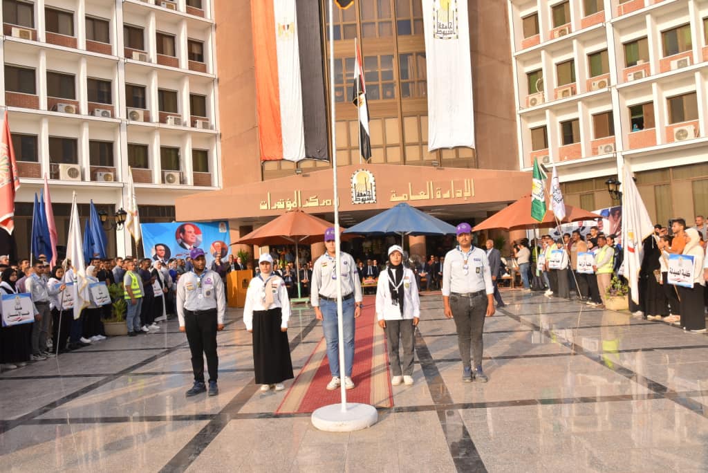 شهد الدكتور أحمد المنشاوي رئيس جامعة أسيوط، صباح اليوم، الأول من أكتوبر، مراسم تحية العلم؛ إيذانًا ببداية العام الدراسي الجديد 2023 /2024م؛ وذلك من أمام المبنى الإداري للجامعة، في تقليدٍ سنوي تنظمه جامعة أسيوط، بالتعاون مع أسرة طلاب من أجل مصر، واتحاد طلاب الجامعة، وإدارة الجوالة بالإدارة العامة لرعاية الشباب؛ حرصًا على تعزيز قيم الولاء والانتماء والمواطنة بين طلاب وطالبات الجامعة.