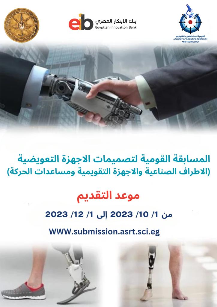 أعلن الدكتور محمود صقر رئيس أكاديمية البحث العلمي والتكنولوجيا، أنه سيتم اعتبارًا من اليوم تلقى أفكار ومقترحات مبتكرة على الموقع الرسمي لأكاديمية البحث العلمي، لاستقبال حلول مبتكرة في المسابقة القومية الثانية لتصميمات الأجهزة الطبية التعويضية (الأطراف الصناعية والأجهزة التقويمية ومساعدات الحركة)، وهى تعد مسابقة قومية بالتعاون مع وزارة الدفاع.