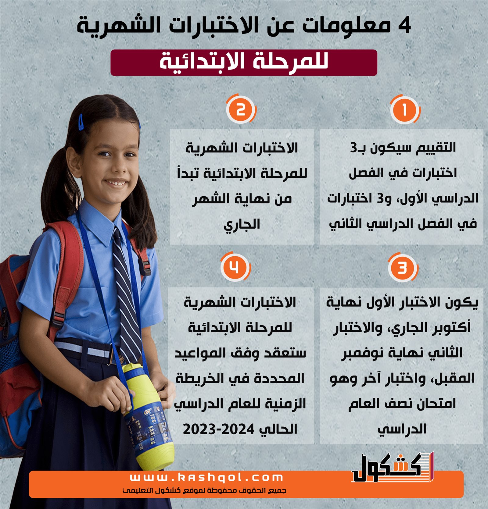 إنفوجراف| 4 معلومات عن الاختبارات الشهرية للمرحلة الابتدائية