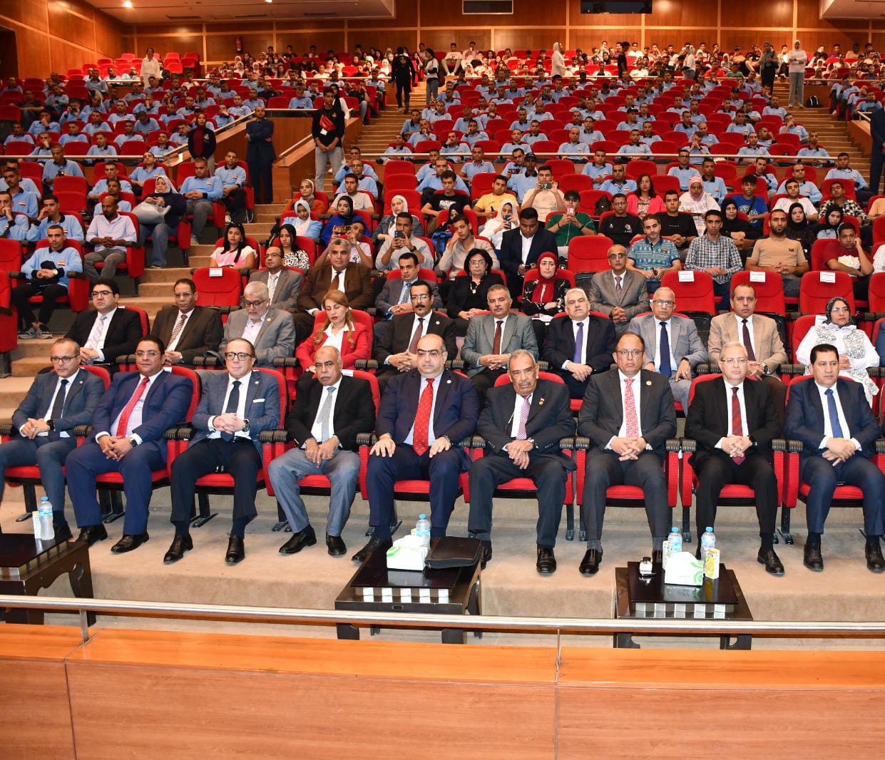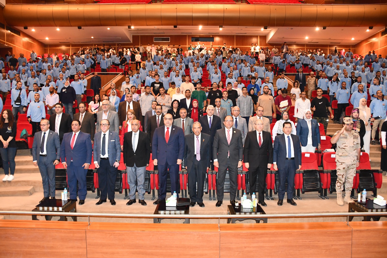 وبحضور الدكتور كريم همام مستشار وزير التعليم العالي والبحث العلمي للأنشطة الطلابية، والدكتور وليد السروجي نائب رئيس الجامعة لشئون خدمة المجتمع وتنمية البيئة، والدكتور عماد أبو الدهب نائب رئيس الجامعة لشئون الدراسات العليا والبحوث، والعقيد عبدالرحمن محمد مدير إدارة التربية العسكرية بالجامعة، وعمداء كليات جامعة حلوان، والطلاب، وأمين عام الجامعة والأمناء المساعدين.