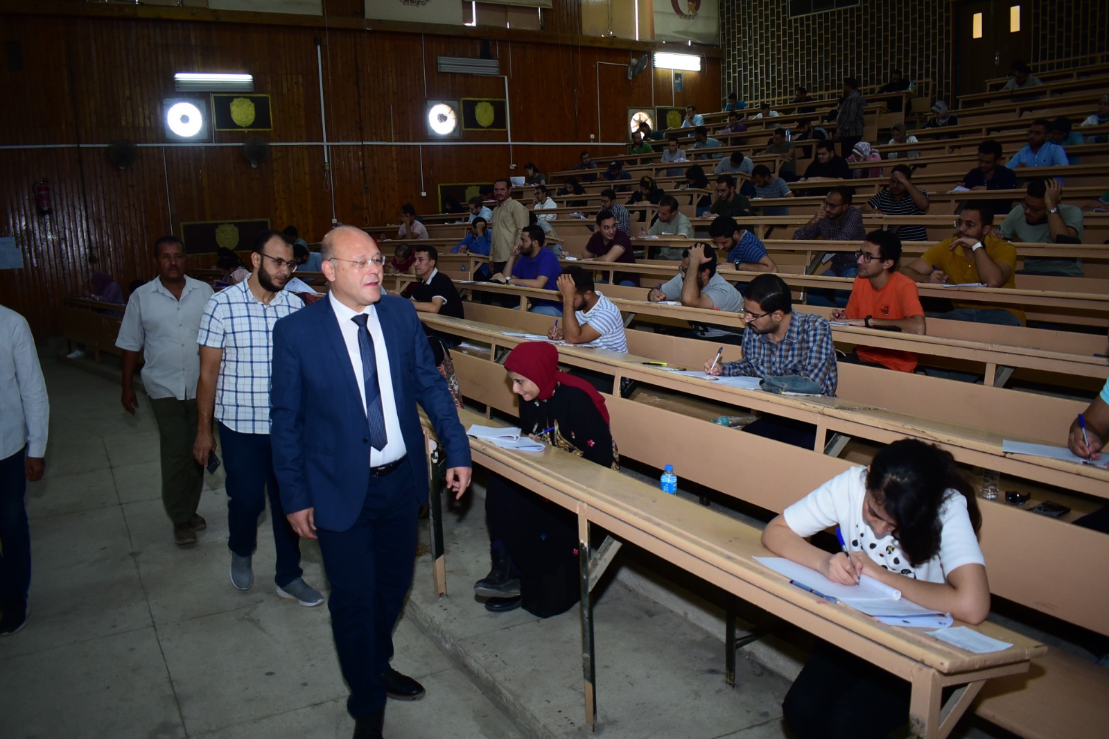 أجرى الدكتور حسان النعماني رئيس جامعة سوهاج، صباح اليوم، جولة تفقدية لمتابعة أعمال امتحانات الفرقة السادسة بكلية الطب البشري بمقر الجامعة القديم، يصاحبه الدكتور محمد نصر الدين ثابت وكيل الكلية لشئون التعليم والطلاب، والدكتور سمير عبدالمجيد أستاذ الجراحة العامة بكلية الطب، والدكتور هاني الشريف أمين الكلية.