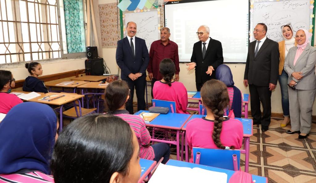 وقد حرص الوزير والمحافظ على تفقد أحد فصول الصف الرابع الابتدائى أثناء حصة اللغة العربية، واستمع لآراء الطالبات والمعلومات التي اكتسبنها من الدرس وتدريبهن على التعبير والتواصل.