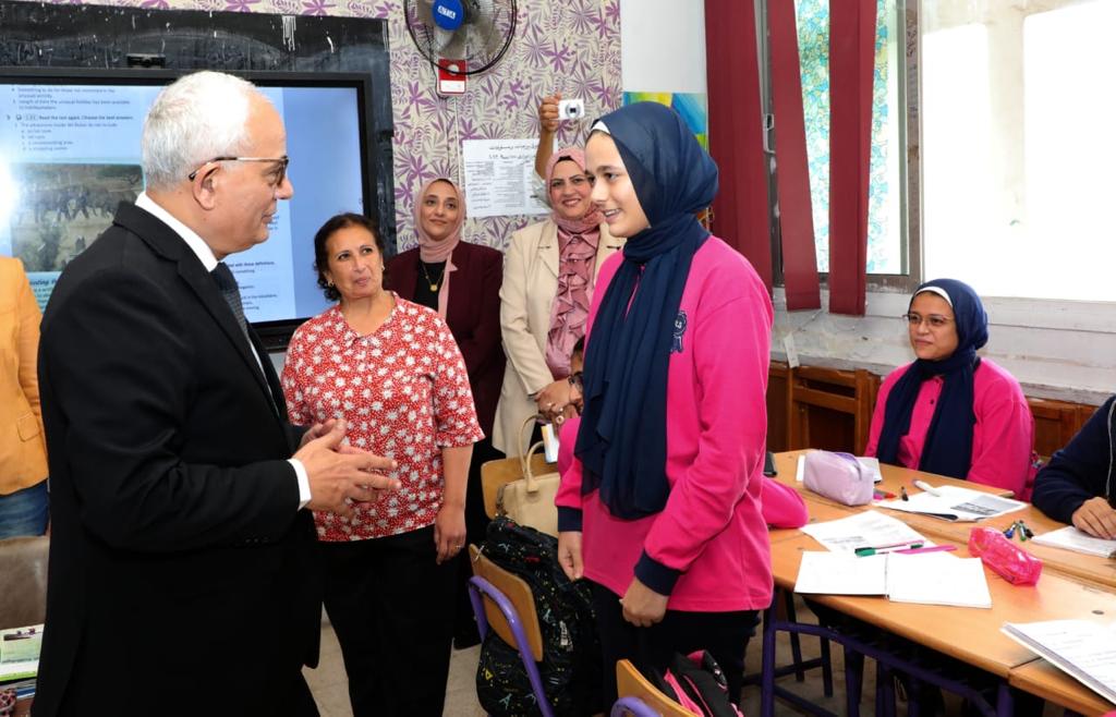 كما تفقدا أحد فصول الصف الثانى الإعدادى أثناء حصة اللغة العربية، وناقش الوزير الطالبات حول الدرس، مؤكدًا أن الوزارة تحرص على إعداد جيل من الطلاب قادر على الفهم وليس الحفظ والتلقين.