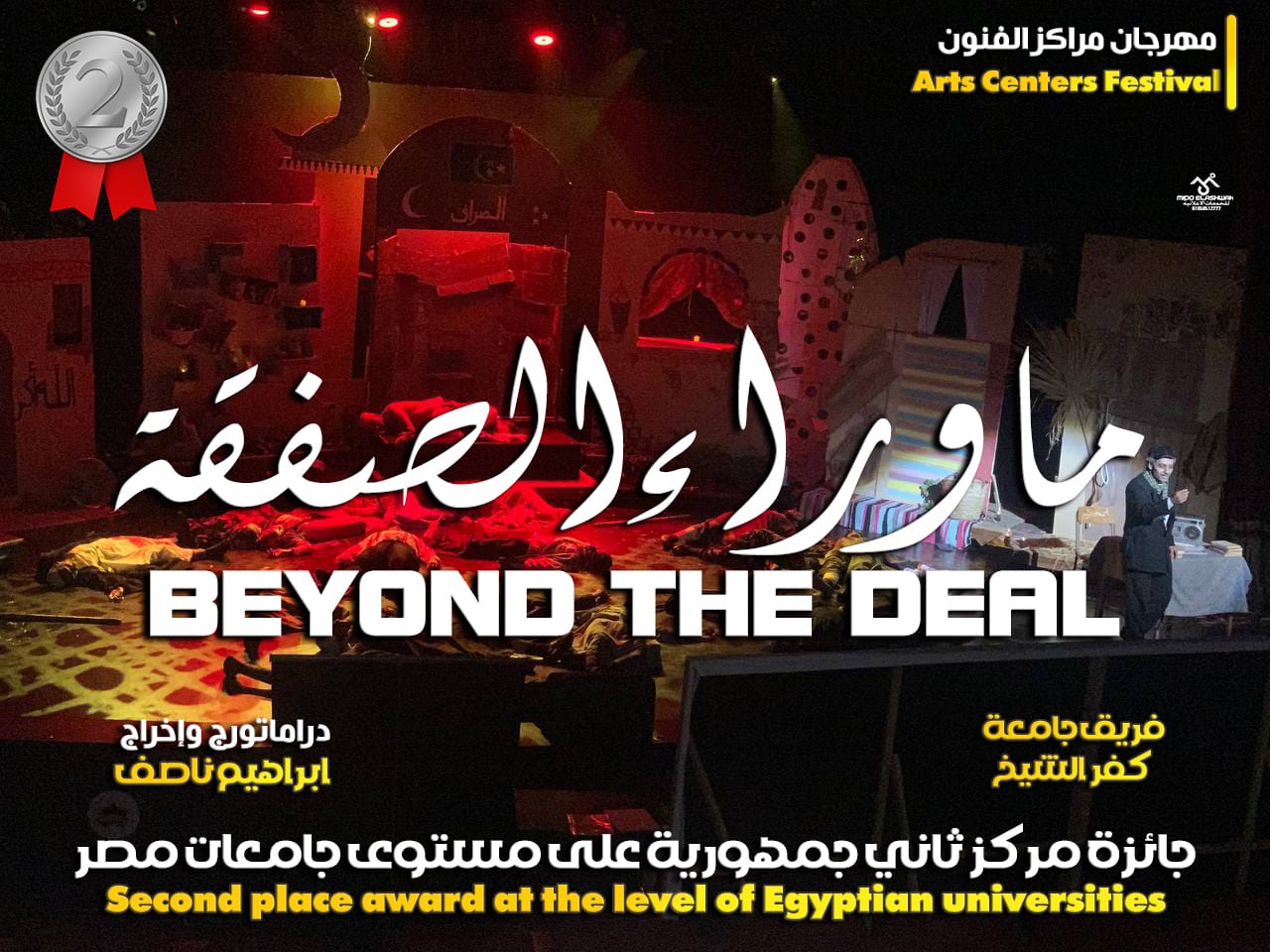 ومن جانبه أعرب الدكتور محمد عبد العال نائب رئيس الجامعة لشئون التعليم والطلاب، عن بالغ سعادته بطلابه من فريق مسرح الجامعة وذلك لتصدرهم وحصولهم على المركز الثاني بالمسابقة التي شارك بها ٨ جامعات مصرية مصعدة (قناة السويس - الإسكندرية - كفرالشيخ - جنوب الوادي - سوهاج - طنطا - القاهرة - حلوان)، حيث شارك فريق مسرح جامعة كفرالشيخ بمسرحية "ما وراء الصفقة" عن قصة "الصفقة" لتوفيق الحكيم.