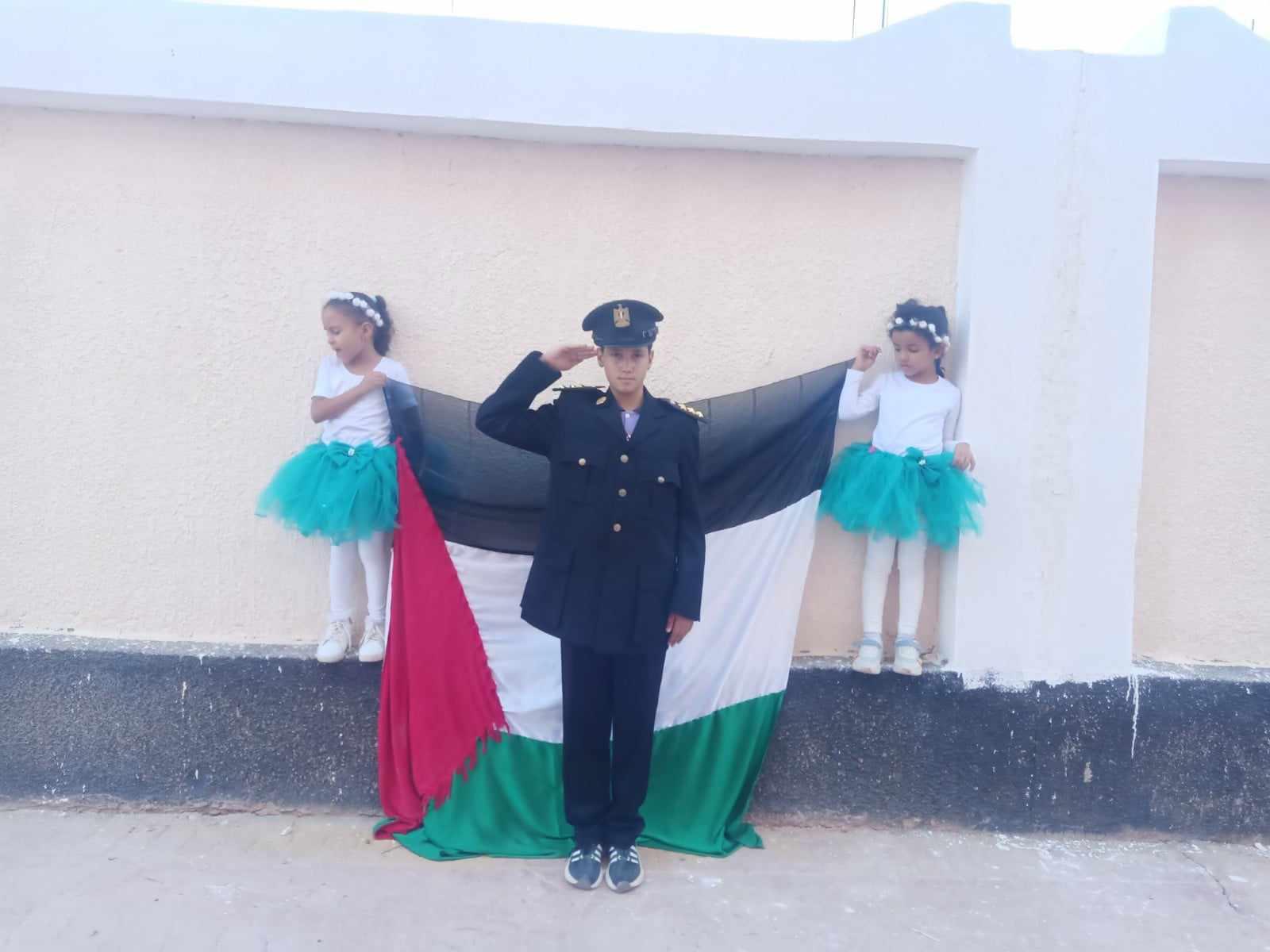 ورفع الأطفال العلم المصري، وعلم دولة فلسطين، مرددين "فلسطين عربية.. تحيا مصر".