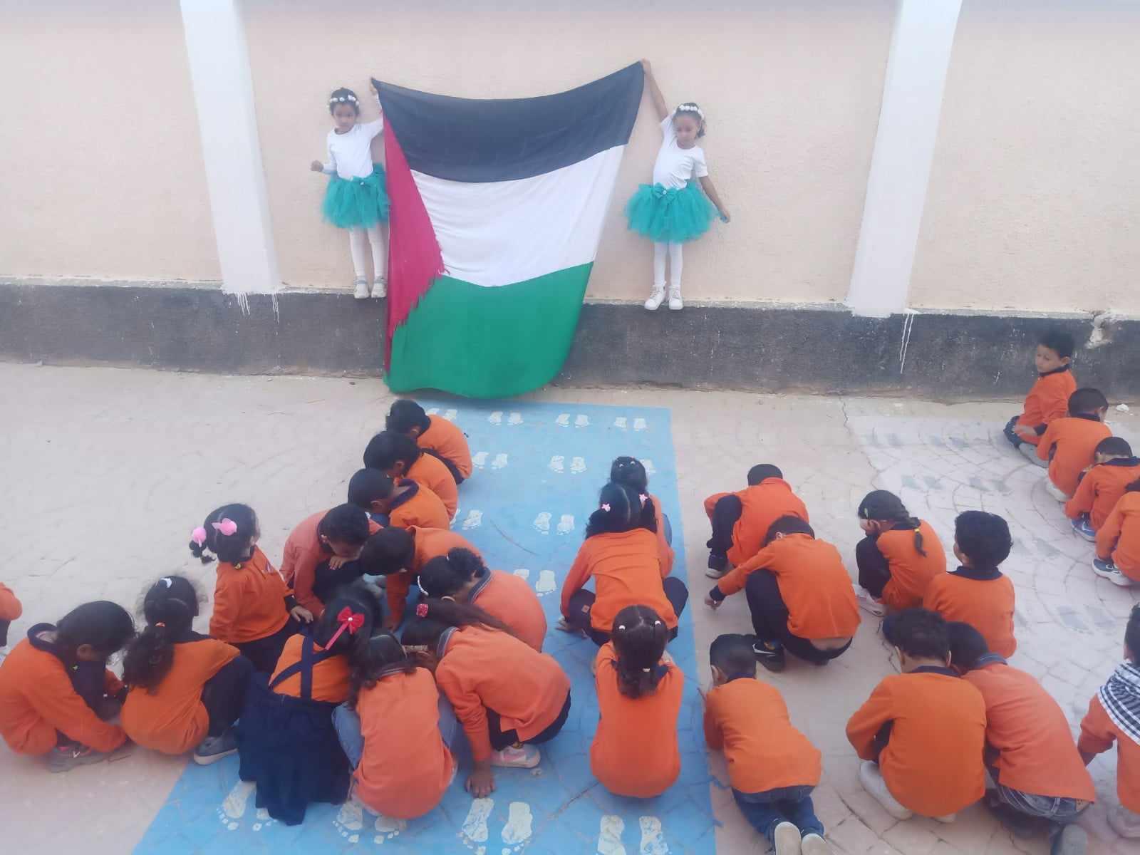 وقدم الأطفال استعراضًا غنائيًا بعنوان "أعطونا الطفولة" وألقى أحد الطلاب قصيدة تصف حال غزة والمسجد الأقصى، تعبيرًا منهم عن غضبهم بما يحدث في أهالي غزة.
