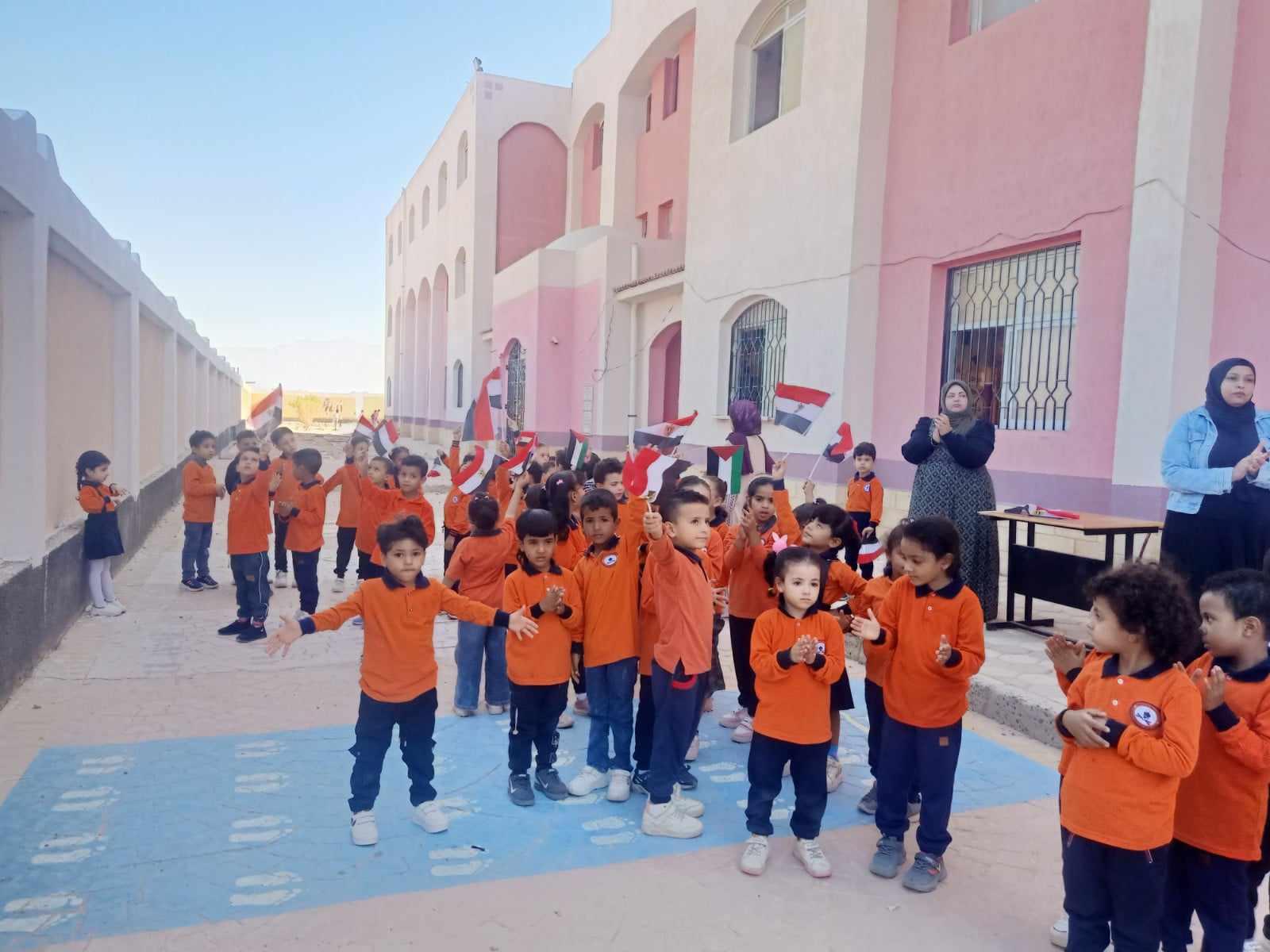 رسم أطفال مدرسة المروة المتميزة بجنوب سيناء، كلمة "فلسطين" بأجسادهم، تضمانًا مع مواطني غزة، الذين يتعرضون للقصف من قبل الاحتلال الإسرائيلي.