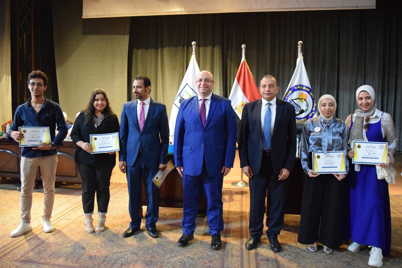 والعاملون الذين تم تكريمهم هم: جمعة عويس سليمان بكلية الصيدلة، والأستاذ عمر محمد أبو بكر بكلية الزراعة، وصبحي أحمد خليفة، ومحمد طه بإدارة الجامعة، وأحمد محمد علي بكلية التعليم الصناعي، وناهد رمزي عبده بكلية العلوم، وعبد الحميد أحمد كمال بكلية طب الأسنان، وجملات عبد العال حماد بالمدن الجامعية، ويس محمد عبدالحميد بكلية الآداب.