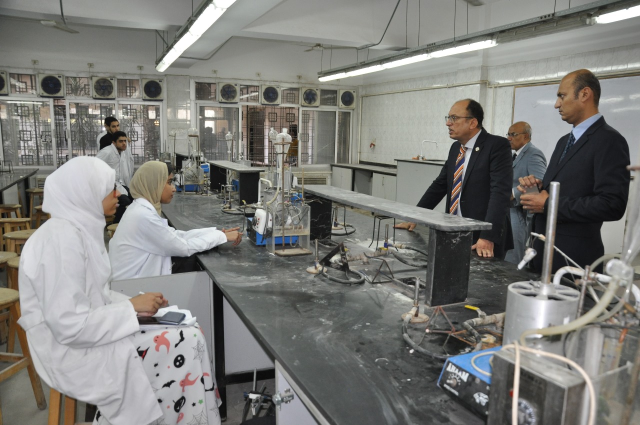 رئيس جامعة حلوان يتفقد كليتي الصيدلة والطب للاطمئنان على انتظام سير العملية التعليمية