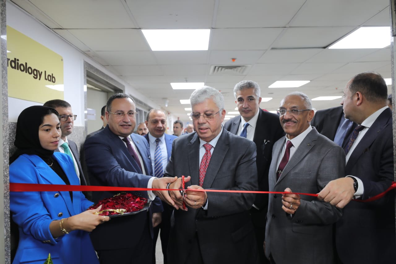 وخلال جولته، افتتح الوزير، وحدة قسطرة القلب للأطفال التابعة لمستشفى سموحة للأطفال، بتكلفة إجمالية 24 مليون جنيه، بتمويل من البنك الأهلي المصري، وتشمل الوحدة على جهاز قسطرة قلب للأطفال، جهاز إيكو على القلب، وجهاز إلكترو فسيولوجي والخاص بعلاج اضطرابات النبض، ومُلحق بها وحدة عناية متوسطة لاستقبال الحالات عند اللزوم، وتخدم الوحدة جميع مرضى قوائم الانتظار من الأطفال، فضلًا عن افتتاح وحدة قسطرة قلب الكبار بمستشفى سموحة الجامعي التخصصي، بتكلفة 20 مليون جنيه، بتمويل من شركة الغرابلي للأعمال الهندسية، وتضم الوحدة جهاز قسطرة قلب، وجهاز كي متعدد التقنيات لعلاج اضطرابات ضربات القلب.