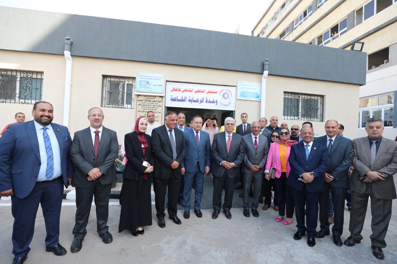 وصرح الدكتور عادل عبدالغفار المستشار الإعلامي والمتحدث الرسمي للوزارة، بأن الزيارة اشتملت أيضًا على افتتاح وحدة عناية ما بعد العمليات الجراحية، التابعة للمستشفى الرئيسي الجامعي عمارة الجراحة، بتكلفة 21 مليون جنيه، وتم تمويل الإنشاءات من الموازنة العامة وتمويل الأجهزة من مؤسسة آل رجب، وتتكون الوحدة من 24 سريرًا للعناية كاملة التجهيز، منها عدد 3 غرف مُخصصة للعزل، كما تم افتتاح توسعة وحدة عيون الأطفال التابعة لمركز خدمات اليوم الواحد، بتكلفة 14 مليون جنيه على ثلاث مراحل، بتمويل من منظمات المجتمع المدني، ويحتوي المشروع على 5 غرف، وتم الانتهاء من المرحلة الأولى، والتي تضمنت تجهيز غرفة عمليات كاملة، تضم 32 سريرًا للإقامة بالعنابر الداخلية مع كافة الخدمات المُلحقة بها وعنبر إفاقة كامل التجهيز، بنسبة تنفيذ 80%.
