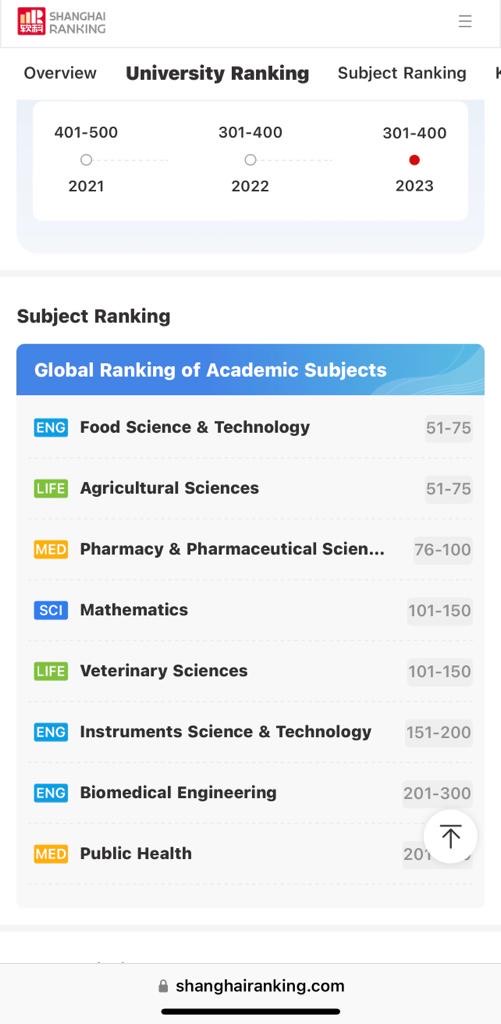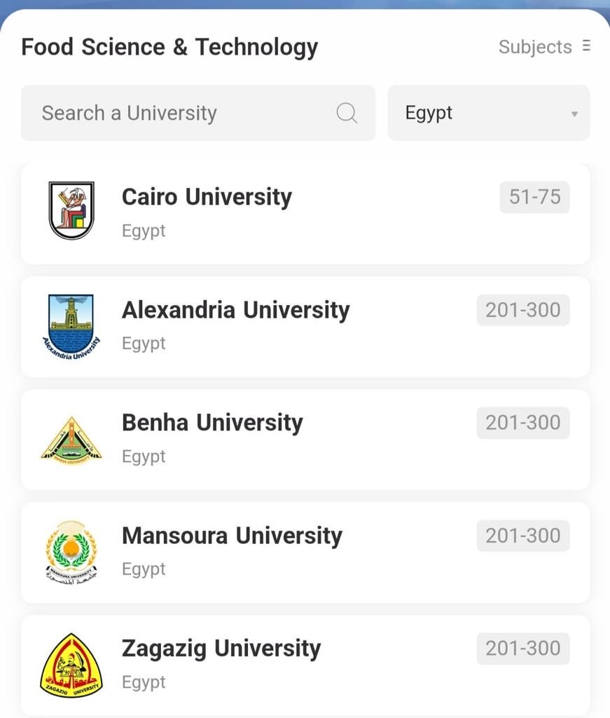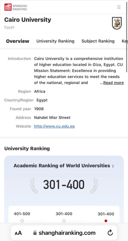 ترتيب جامعة القاهرة في تصنيف شنغهاي للتخصصات لعام 2023