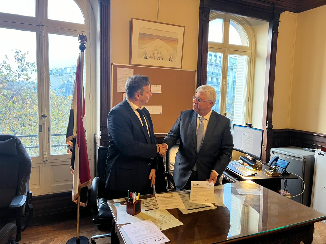 التقى الدكتور أيمن عاشور وزير التعليم العالي والبحث العلمي، بوفد جامعة ليون برئاسة الدكتور مانويل جوبيرت نائب رئيس الجامعة لشئون أوروبا والعلاقات الدولية، بحضور الدكتور شريف صالح رئيس قطاع الشئون الثقافية والبعثات، والدكتور نور السبكي الملحق الثقافي المصري بباريس، واليدا هلي مدير مشروعات الشرق الأدنى والأوسط، وذلك على هامش زيارته لباريس للمشاركة في أعمال الدورة (٤٢) للمؤتمر العام لليونسكو، والتي تعقد خلال الفترة من ٧ حتى ٢٢ نوفمبر الجاري.