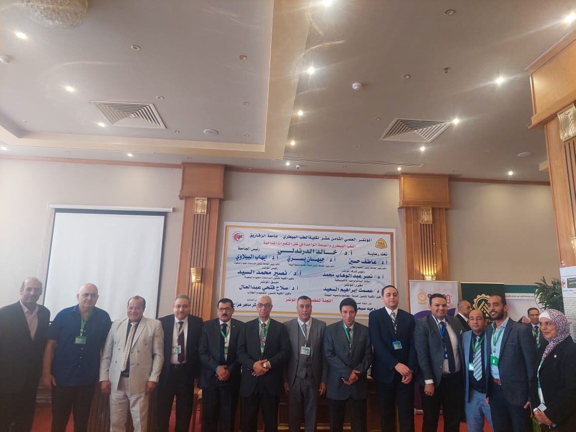 عقدت كلية الطب البيطري جامعة الزقازيق المؤتمر العلمي الثامن عشر بمدينة الغردقة تحت عنوان "الطب البيطري والصحة الواحدة في ظل التغييرات المناخية"، في الفترة من ٩ حتى ١٢ نوفمبر ٢٠٢٣م، تحت رعاية الدكتور خالد الدرندلي رئيس جامعة الزقازيق، والدكتور عاطف حسين نائب رئيس الجامعة لشئون التعليم والطلاب، والدكتورة جيهان يسري نائب رئيس الجامعة لشئون خدمة المجتمع وتنمية البيئة، والدكتور إيهاب الببلاوي نائب رئيس الجامعة لشئون الدراسات العليا والبحوث.
