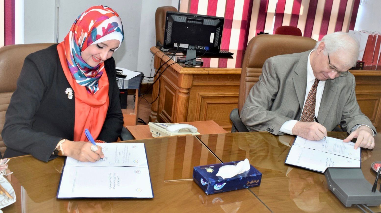 ووقع بروتوكول التعاون عن معھد بحوث الإلكترونيات الدكتورة شيرين محمد عبدالقادر محرم رئيس المعھد، وعن الجامعة المصرية الروسية الدكتور شريف فخري رئيس الجامعة، فيما شهد فاعليات توقيع البروتوكول من معهد بحوث الإلكترونيات، الدكتور أحمد طوبال المشرف علي المكتب الفني بالمعهد؛ والدكتور باسم إبراهيم رئيس معمل الحوسبة السحابية والمشرف على إدارة نظم المعلومات والتحول الرقمي، وعن الجامعة المصرية الروسية الدكتور هشام فتحي عميد كلية الذكاء الاصطناعي، والدكتور علاء محمد البطش عميد كلية الهندسة، والدكتورة شيماء مصطفى رئيس قسم الاتصالات بكلية الهندسة، والدكتور سامح ظريف رئيس قسم الذكاء الاصطناعي بكلية الذكاء الاصطناعي، والدكتور وائل بدوى رئيس قسم علوم البيانات بكلية الذكاء الاصطناعي.