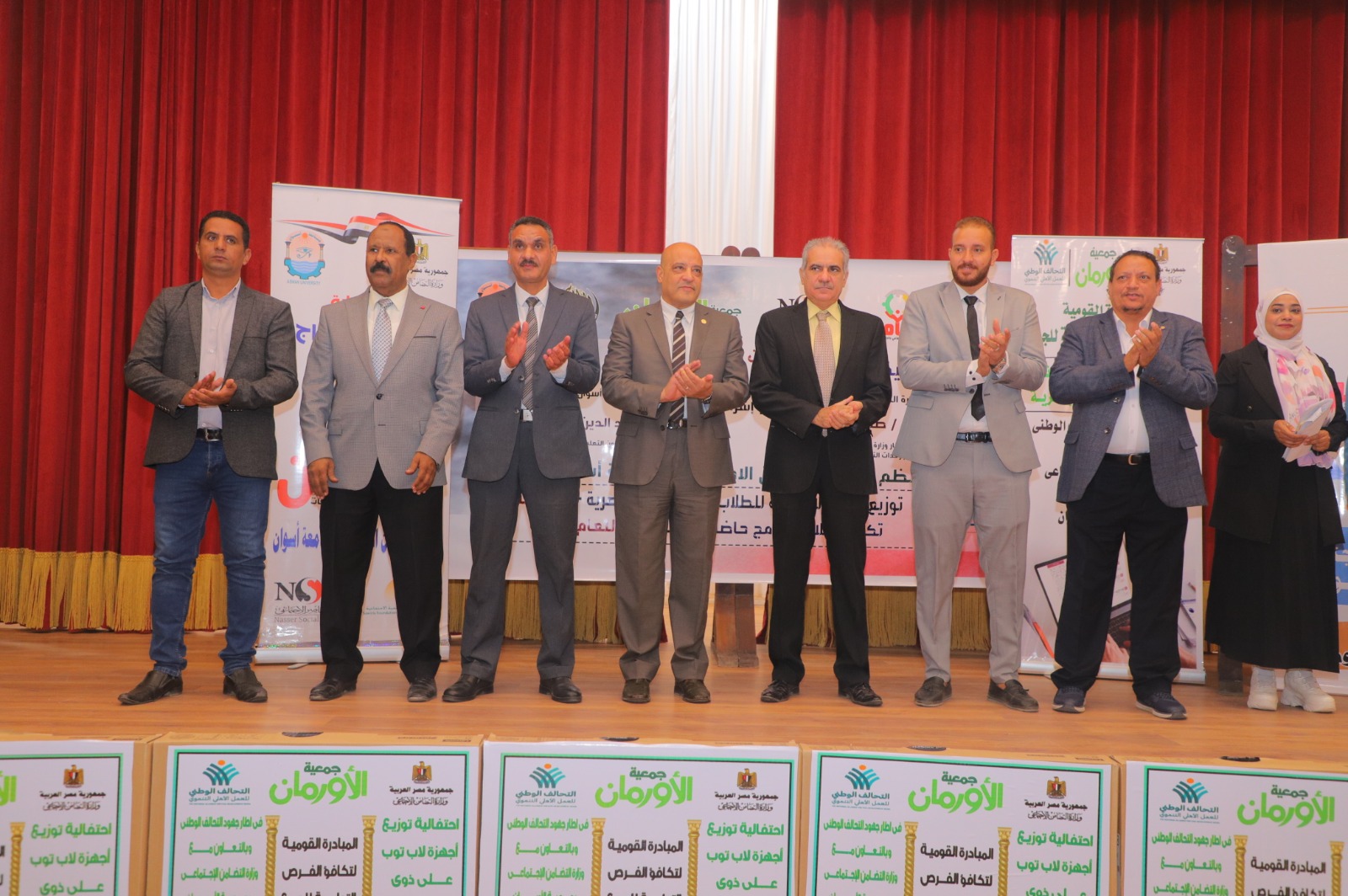 حيث جاءت الاحتفالية ضمن مبادرة تكافؤ الفرص التعليمية للجميع الذي أطلقتها وزارة التضامن الاجتماعي بالتعاون مع جمعية الأورمان، حيث تم توفير عدد (10) لاب توب ناطق للطلاب ذوي الهمم البصرية بجامعة أسوان.
