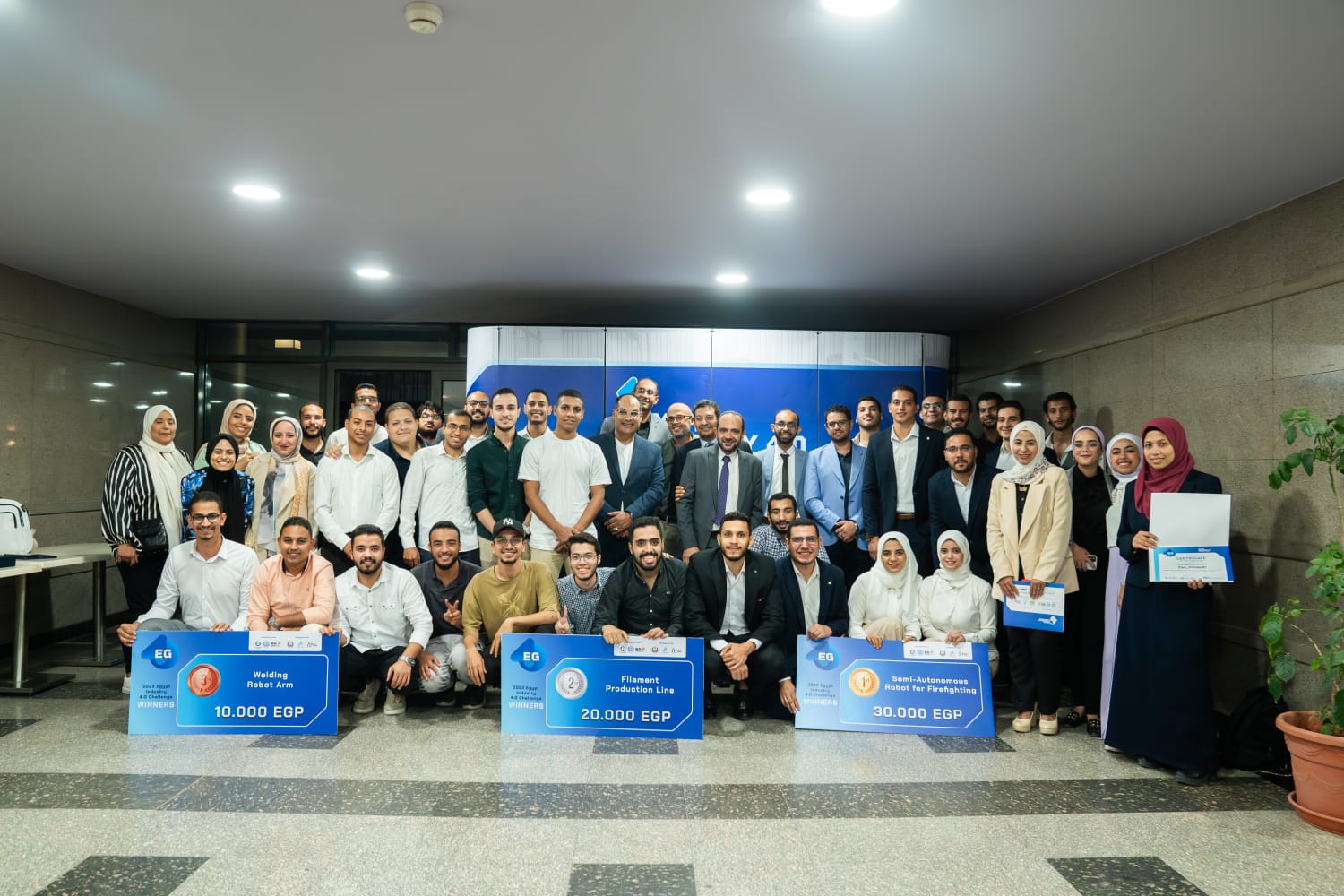 وفاز بالمركز الأول مشروع Semi- Autonomous Robot for Firefighting and Rescue operationمن جامعة المنصورة، وفاز بالمركز الثاني مشروع Filament Production Line من جامعة حلوان، بينما فاز بالمركز الثالث مشروع Welding Robot Arm من المعهد التكنولوجي العالي بالعاشر من رمضان، وقد خصصت اللجنة المنظمة عددًا من الجوائز منها أفضل خطة عمل وأفضل نظام متكامل وأكثر فكرة مشروع ملهمه، وتأتي إقامة التحدي للعام الثالث على التوالي تماشيًا مع جهود الدولة لتطبيق تقنيات الثورة الصناعية الرابعة في شتى المجالات والقطاعات الصناعية، وذلك في إطار تحقيق رؤية مصر 2030