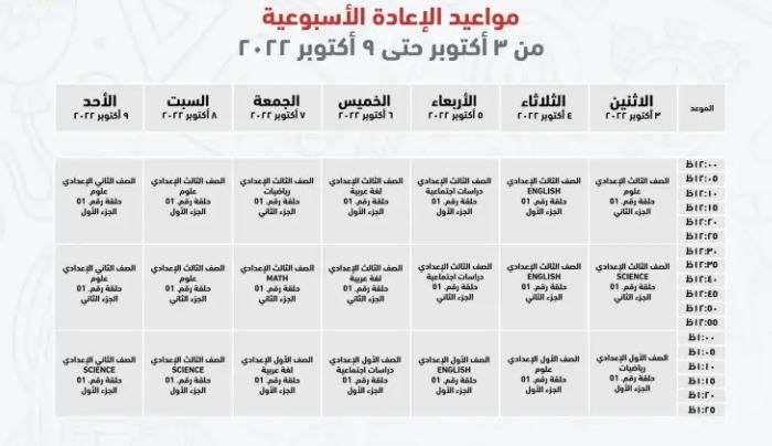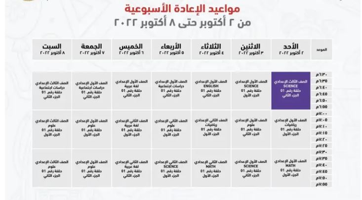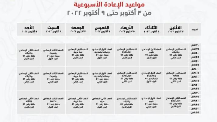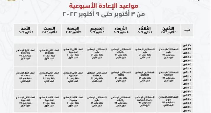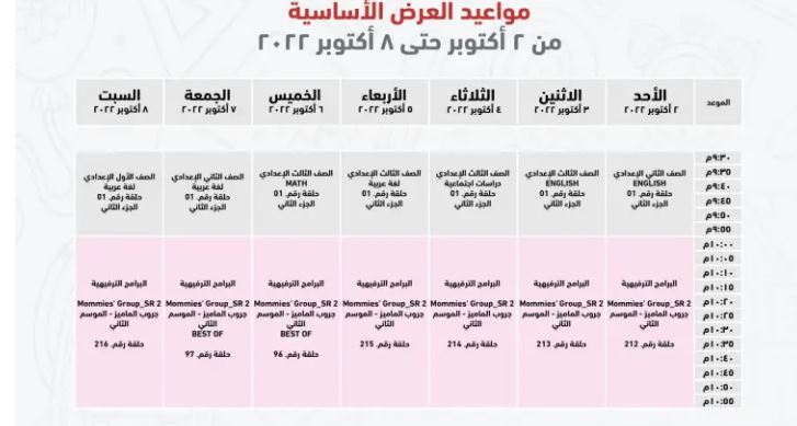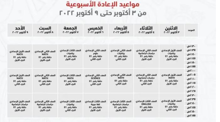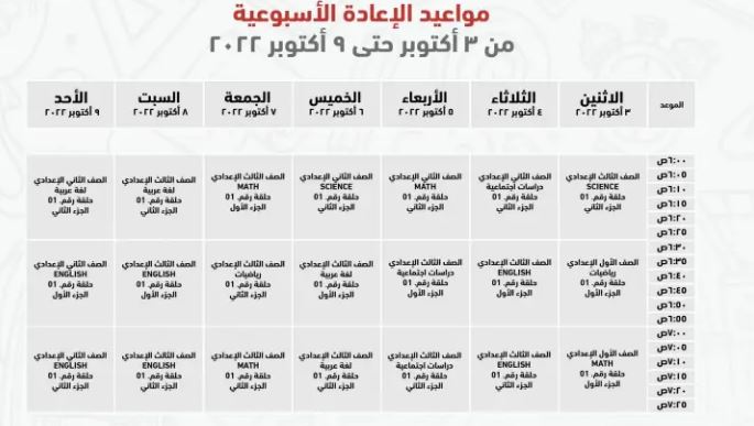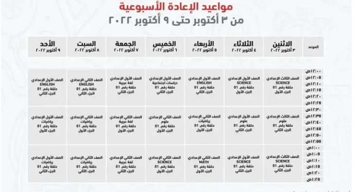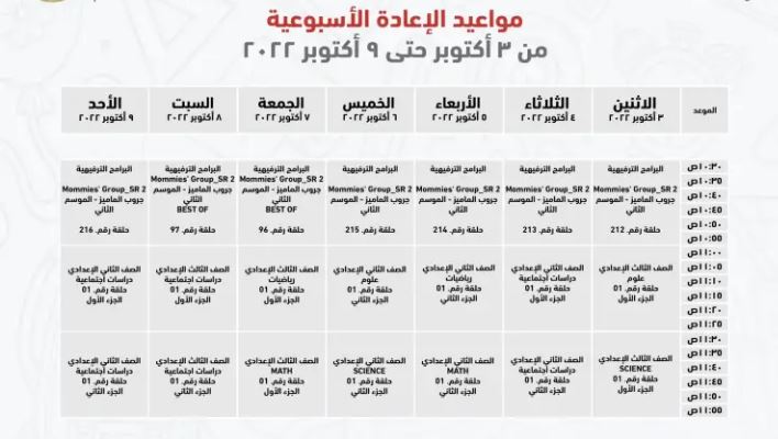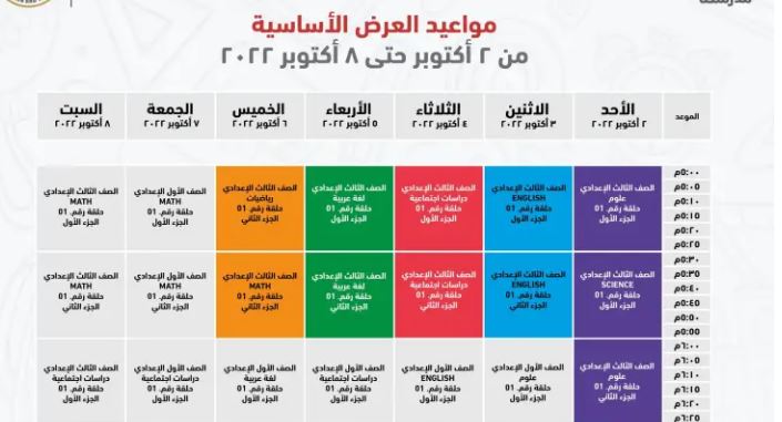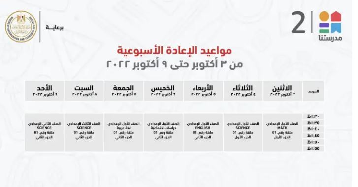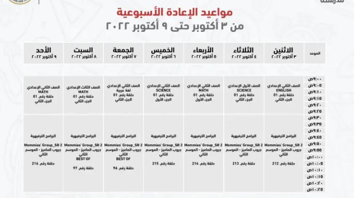 مواعيد عرض البرامج التعليمية للصف الثالث الإعدادي على قناة مدرستنا