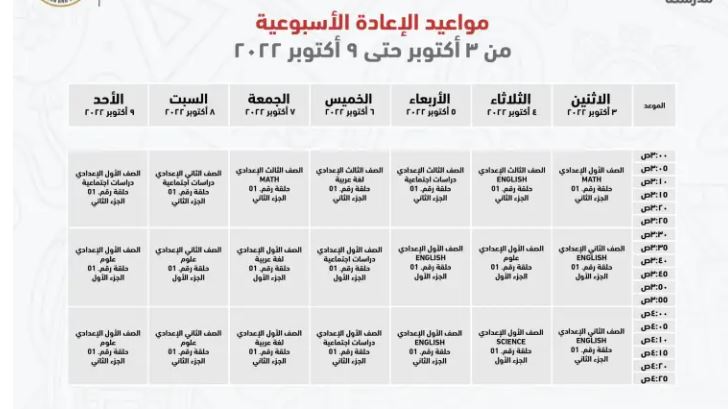 وفيما يلي يقدم "كشكول" جدول مواعيد عرض البرامج التعليمية للصف الثالث الإعدادي على قناة مدرستنا بعد زيادة عمليات البحث عنها، فتنطلق البرامج التعليمية للصف الثالث الإعدادي على قناة مدرستنا يوميا من 4.30 حتى 5 مساء، ومن 6 إلى 6.30 مساء، ومن 7.30 إلى 8 مساء، ومن 3 إلى 3.30 عصرا.