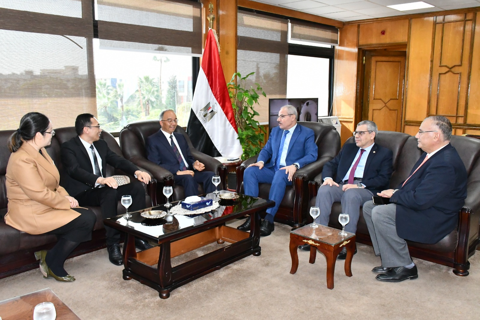 وضم الوفد الصيني كل من البروفيسور يان جينج عميد كلية اللغات الشرقية بالجامعة، والدكتور ما شياو مينج وكيل الكلية ورئيس قسم اللغة العربية.