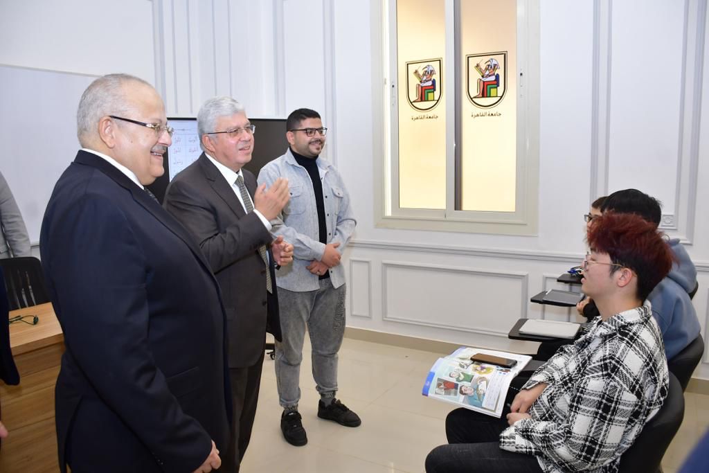 استقبل الدكتور محمد الخشت رئيس جامعة القاهرة، والدكتور محمد أيمن عاشور وزير التعليم العالي والبحث العلمي، بمقر جامعة القاهرة الدولية بمدينة 6 أكتوبر، لتفقد الجامعة الدولية، ومتابعة سير العملية التعليمية والتي انطلقت الدراسة بها للمرة الأولى العام الجامعي الحالي 2023 - 2024، وذلك بحضور نواب رئيس الجامعة، وعمداء الكليات، ونخبة من كبار أساتذة الجامعة.